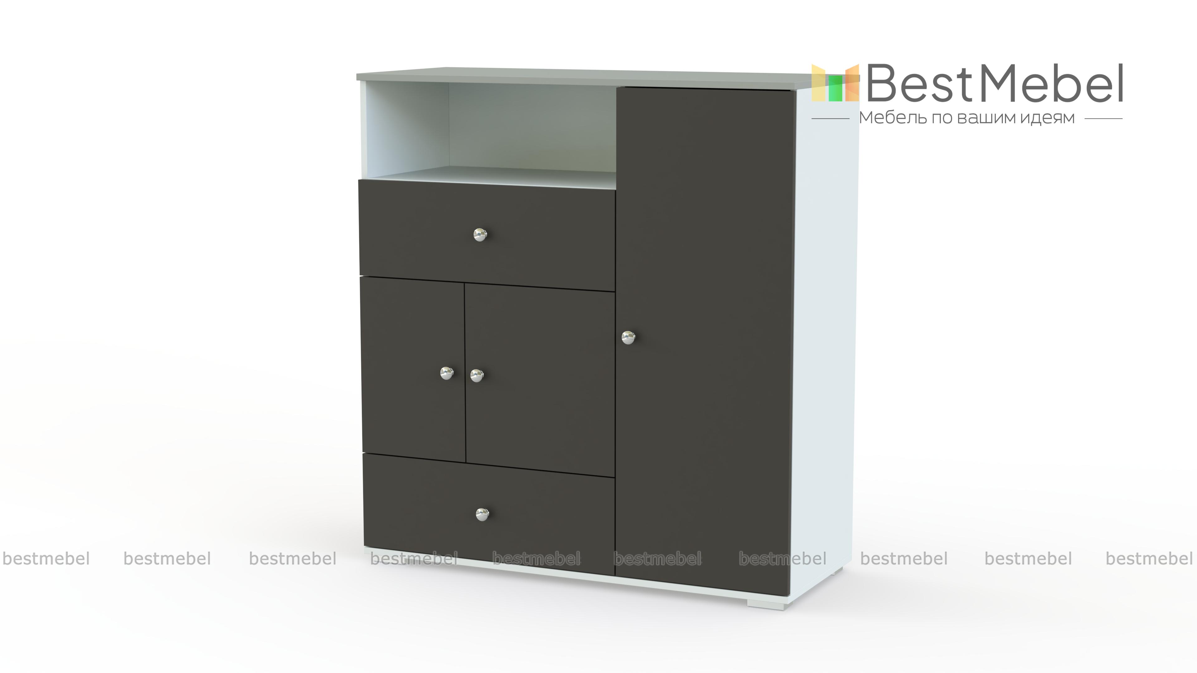 Комод Молодежный Стрит BMS – практичная модель для организации пространства современной молодежной комнаты. Креативная модель выполнена в монохромных оттенках с контрастными деталями. Для удобного хранения школьных или спортивных принадлежностей комод оборудован двумя выдвижными ящиками, распашными отделениями с полками и нишей. Экологичные материалы безопасны и отличаются простотой ухода и износостойкостью. Купить комод Молодежный Стрит BMS приглашаем в наш интернет-магазин по лучшей цене.