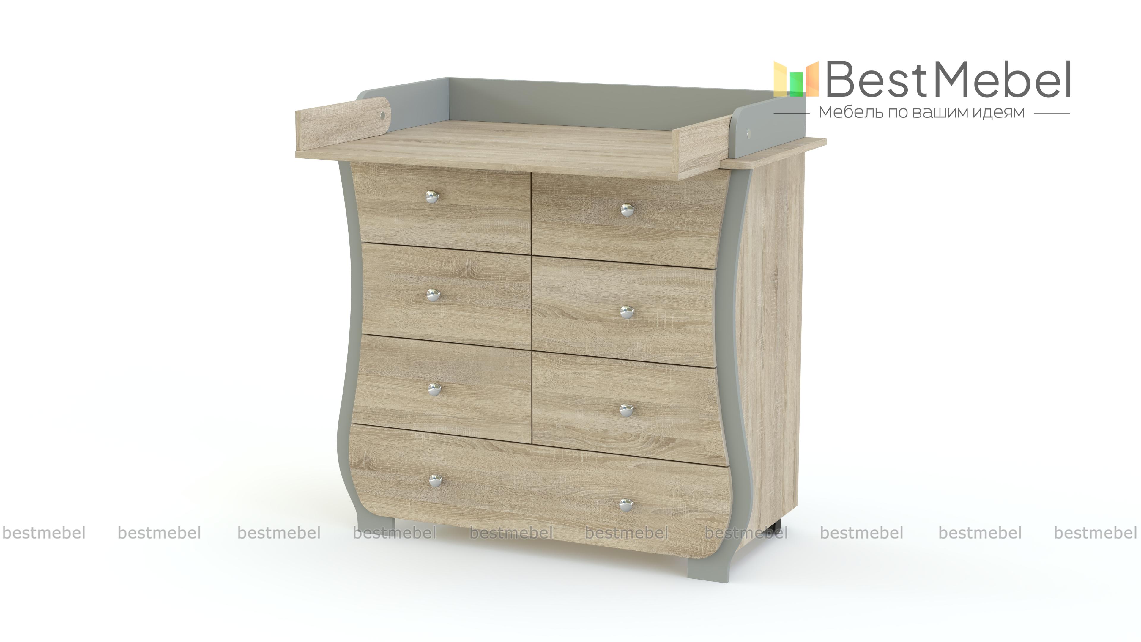 Пеленальный комод Альт 1 BMS с изящно вырезанным фасадом без острых углов украсит современную детскую и сделает уход за малышом комфортным. В одном большом и шести малых выдвижных ящиках, оснащенных ручками-кнопками, удобно хранить средства гигиены, постельное белье, одежду и игрушки. Благодаря откидному столику вы сможете увеличить пеленальную поверхность, а колесики обеспечат комоду легкость перемещения. Купить пеленальный комод Альт 1 BMS приглашаем в наш интернет-магазин, подобрав цветовое решение.