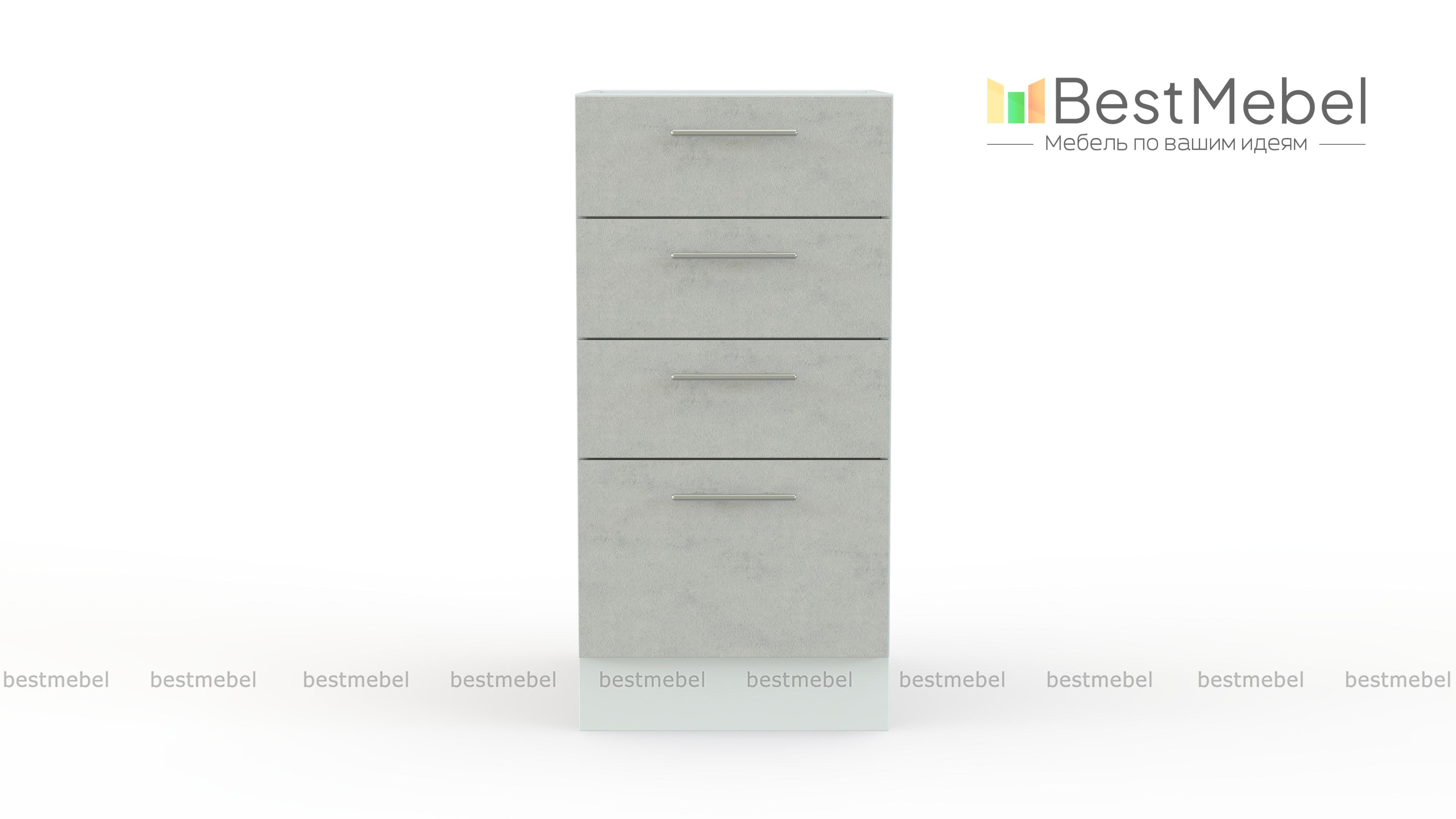 Шкаф нижний с 4-мя ящиками Оля BMS дополнит напольный ряд модулей кухонного гарнитура и оптимизирует хранение мелочей. Компактная и практичная, тумба оборудована тремя малыми и одним большим выдвижными ящиками, что позволит разместить как столовые приборы и прочие мелкие вещи, так и более габаритные кухонные принадлежности. Фасады пастельных тонов дополнены практичными ручками-скобами и легко вписываются в современные интерьеры. Купить шкаф нижний с 4-мя ящиками Оля BMS по доступной цене вы сможете в нашем интернет-магазине.