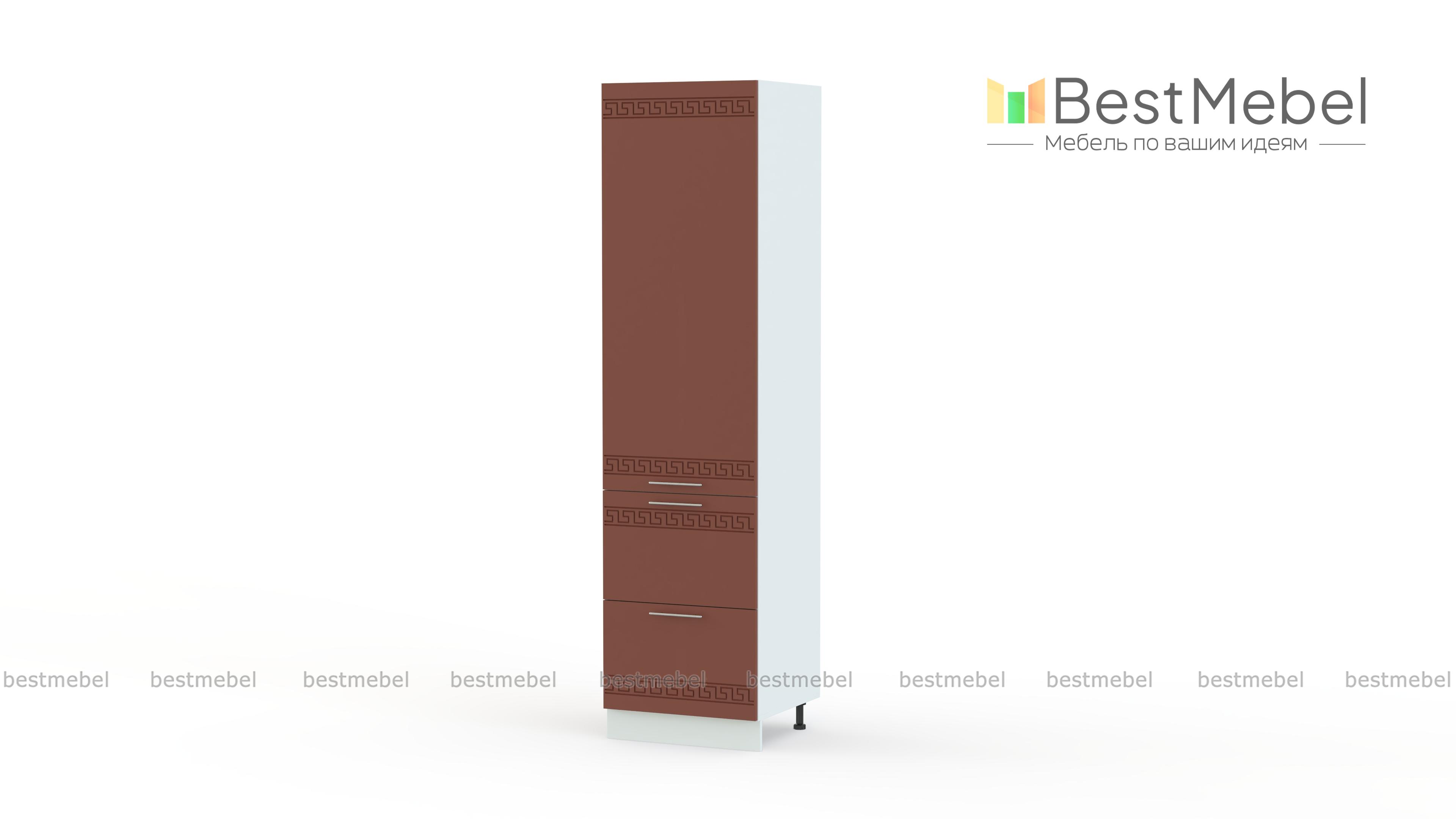 Шкаф-пенал 2 ящика Греция BMS оборудован продуманной системой хранения и будет практичным дополнением интерьера просторных помещений. Два выдвижных ящика в нижней части и распашное отделение с полками позволят разместить как габаритную кухонную утварь, так и необходимые мелочи. Фасады, выполненные из износостойких материалов, декорированы орнаментом и изящными ручками. Купить шкаф-пенал 2 ящика Греция BMS для комфортной и функциональной кухни приглашаем по доступной цене в наш интернет-магазин.
