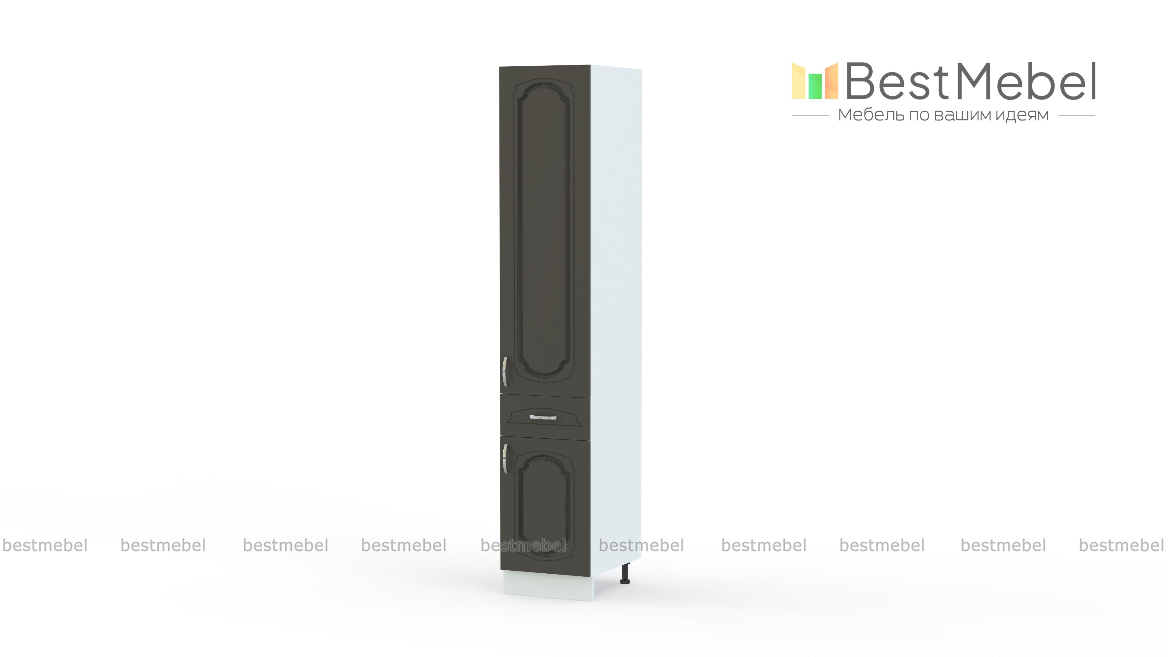 Шкаф-пенал с дверцами и 1-м ящиком Настя BMS отличается компактными размерами, высокой функциональностью и станет оригинальным дополнением комплекта для кухни в классическом стиле. Высокий шкаф оборудован двумя распашными отделениями с полками и выдвижным ящиком в центральной части. Продуманная конструкция позволяет разместить не только крупные предметы, но и необходимые под рукой мелочи. Купить шкаф-пенал с дверцами и 1-м ящиком Настя BMS приглашаем в наш интернет-магазин по лучшей цене.