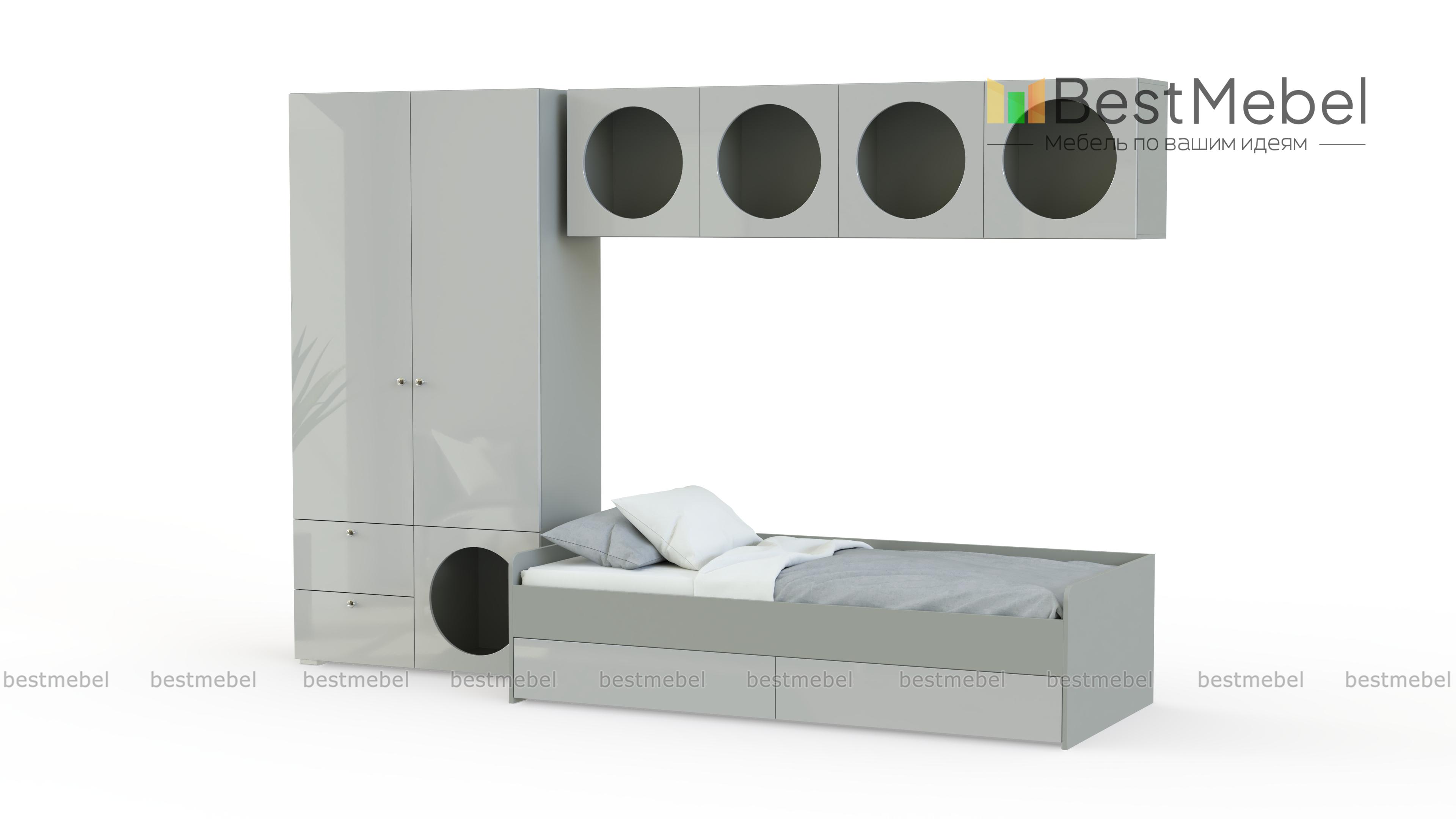 Детская комната Авелин 2 BMS позволит создать хорошо продуманный интерьер с оригинальными деталями. Двухдверный гардероб и подвесные полки обеспечивают достаточно места для хранения одежды, обуви и личных вещей ребенка, а удобная кровать с выкатными ящиками подарит здоровый сон ночью и отдых в дневное время. Дети и подростки точно оценят просторные полки с необычными круглыми вырезами. Купить детскую комнату Авелин 2 BMS приглашаем в наш интернет-магазин с изготовлением по индивидуальным размерам.