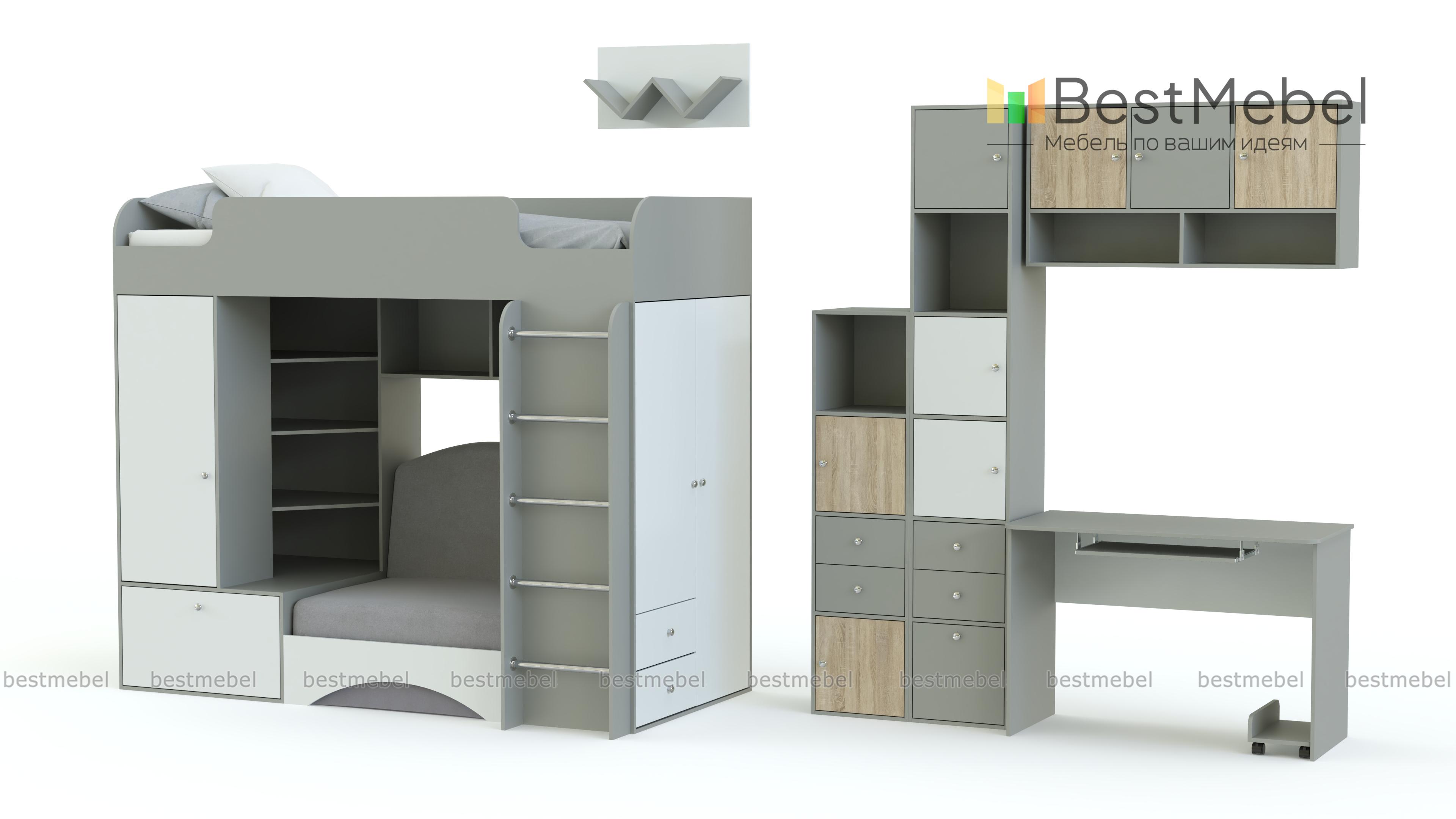 Детская мебель Тетрис-1 модульная BMS порадует детей и родителей ярким современным дизайном, функциональностью и оригинальной конструкцией, которая позволит организовать удобное для учебы и досуга пространство. В комплекте многофункциональный модуль с кроватью-чердаком, диванным блоком, встроенными шкафами и открытыми полками, письменный стол, стеллаж и навесные полки. Цветовое решение – светлые тона с цветными вставками, оптимально для детских комнат. Купить детскую мебель Тетрис-1 модульную BMS вы сможете в нашем интернет-магазине по отличной цене.