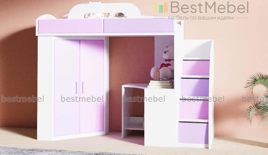 Кровать-чердак со шкафом и столом Фимо 2 BMS поможет вам создать визуально легкий и функциональный интерьер. Двухъярусная композиция включает в себя все необходимое ребенку для комфортного сна, учебы и хранения вещей – спальное место с бортиком и практичной лестницей-комодом, платяной шкаф-трапецию и угловой компьютерный столик с полкой и подставкой под монитор. Матовые фасады просты в уходе и надолго сохранят эстетичный вид. Купить кровать-чердак со шкафом и столом Фимо 2 BMS и сэкономить пространство вам поможет наш интернет-магазин.
