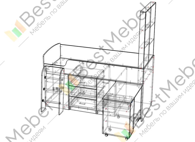 Кровать-чердак Жасмина 1 BMS представляет сбой мини-детскую, в которой есть все самое необходимое для отдыха, учебы и хранения вещей. Оригинальная композиция включает в себя спальное место с бортиками, полками для мелочей в изголовье и наклонной лестницей с металлическими перекладинами. Для хранения одежды или игрушек предусмотрены выдвижные ящики и распашное отделение, а при необходимости ребенок легко сможет воспользоваться выкатным письменным столом с тумбой. Купить кровать-чердак Жасмина 1 BMS приглашаем недорого в наш интернет-магазин.