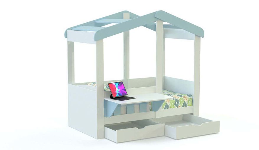 Кровать-домик Поль 12.4 BMS станет прекрасным выбором для комнаты ребенка благодаря нежной бело-голубой гамме. Визуально легкая, но при этом надежная и устойчивая, кровать оборудована просторным спальным местом с защитным бортиком в форме заборчика. Для хранения игрушек или постельных принадлежностей в основании предусмотрены два вместительных выкатных ящика, а небольшой столик, закрепленный с фронтальной части, удобен для учебы, игры и занятий творчеством. Купить кровать-домик Поль 12.4 BMS приглашаем к нам в интернет-магазин.