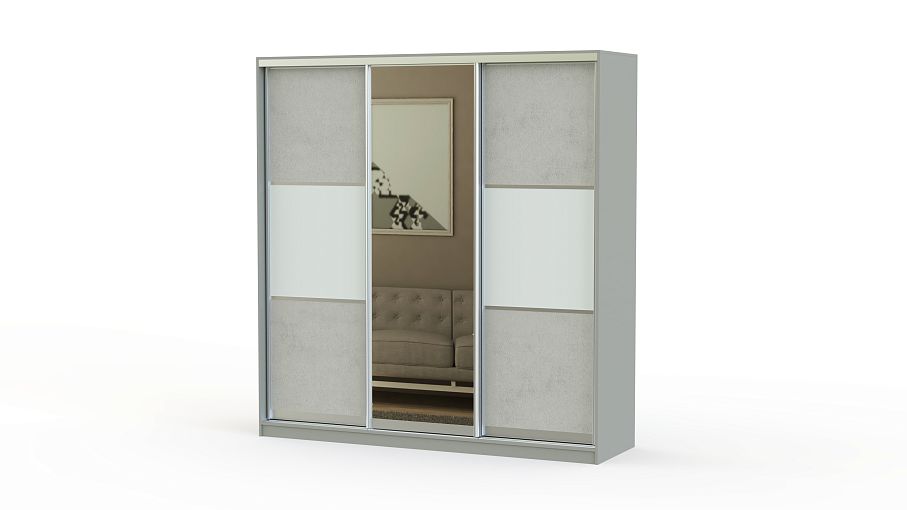 Просторный и вместительный шкаф-купе, имеющий классический дизайн. Трехдверный фасад украшен зеркалом, сочетает в себе холодные контрастные цвета. Такая корпусная мебель легко впишется в интерьер спальни, гостиной или прихожей.
