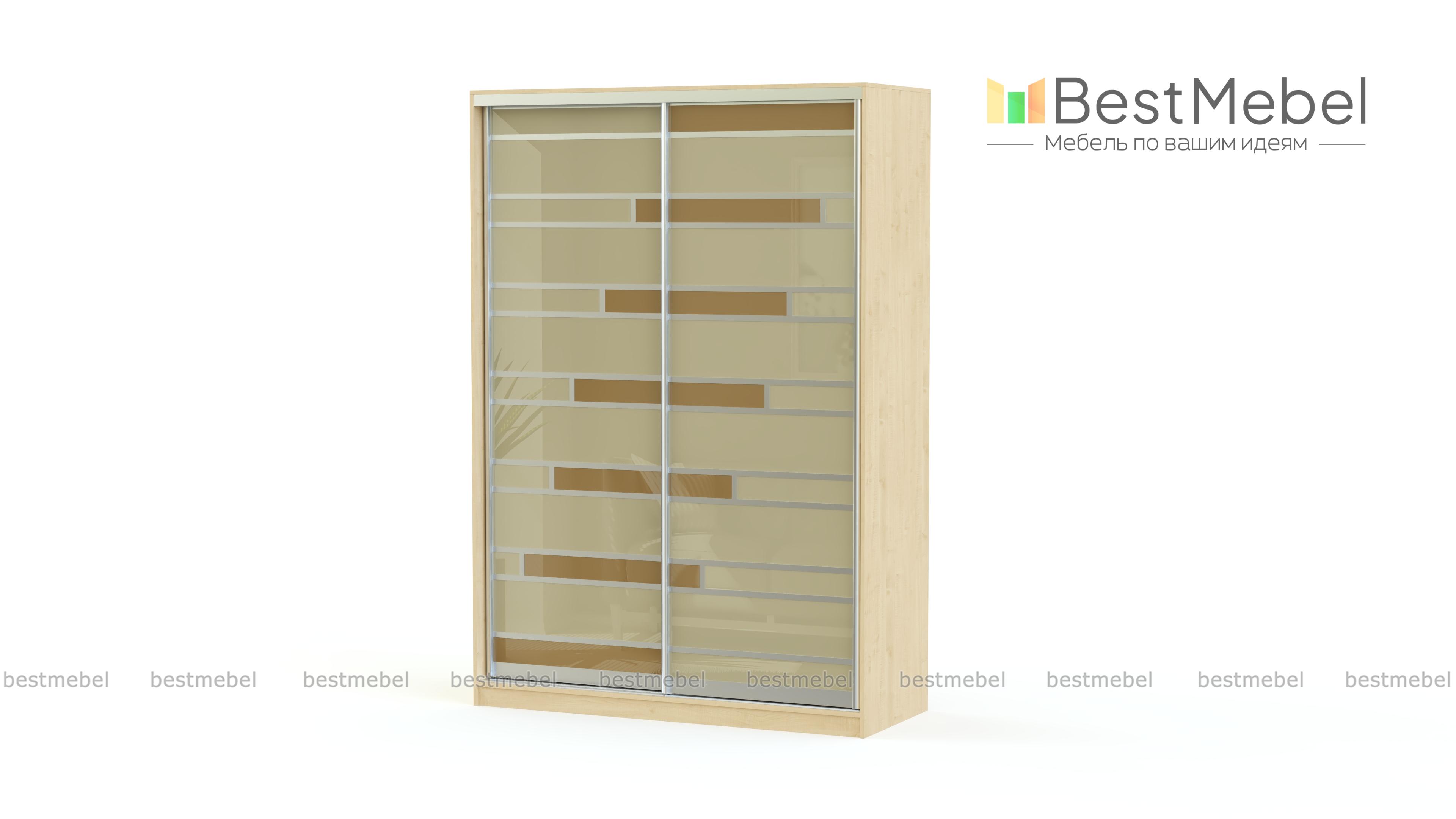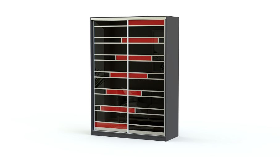 Оригинальный вместительный шкаф-купе Лента BMS с двумя широкими раздвижными дверями поможет не только компактно разместить вещи, но и преобразит интерьер помещения. Каждая дверь оформлена цветным стеклом в комбинации с алюминиевым профилем. Гармоничное сочетание черных и красных полос прочного закаленного стекла создает эффектный внешний вид шкафа. Внутреннее наполнение в традиционном исполнении предусматривает наличие вместительных полок и хромированной штанги для хранения вещей на вешалках.