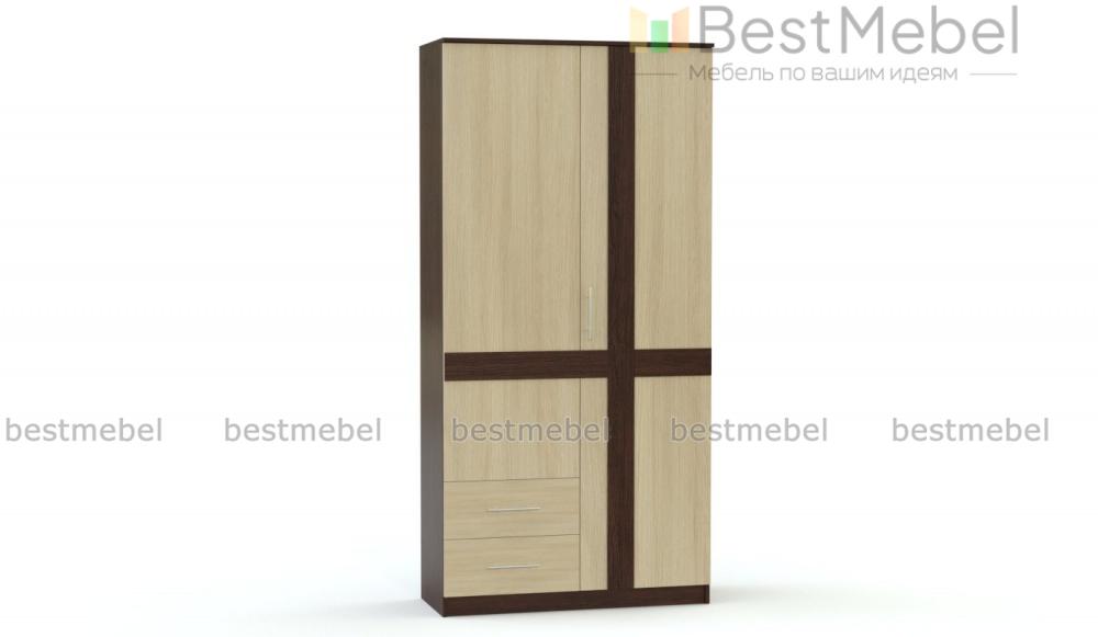 Распашной шкаф Зоя 1 BMS с геометричным декором фасада дополнит другие предметы серии или станет ярким акцентом в интерьере. Двухдверная модель отличается компактными размерами, а особенную вместительность ей обеспечивает комбинированная конструкция с двумя выдвижными ящиками. Шкаф выполнен из качественной ламинированной плиты в контрастных древесных тонах и будет долго радовать вас эстетичным внешним видом. Купить распашной шкаф Зоя 1 BMS по доступной цене вы сможете на сайте нашего интернет-магазина.