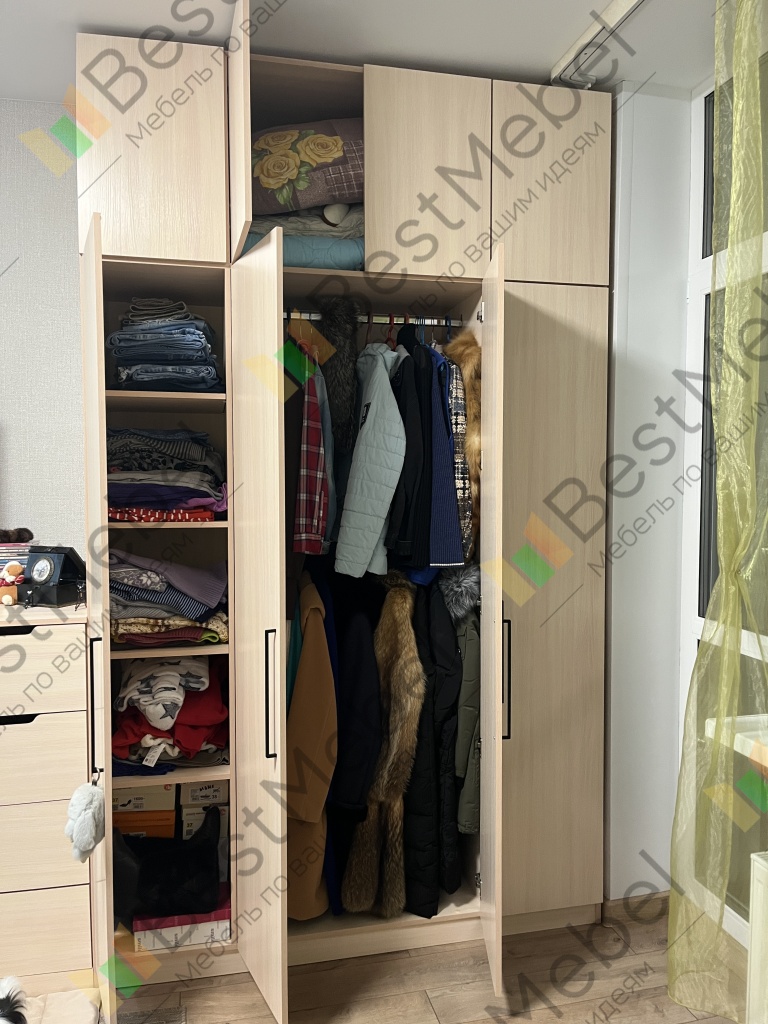 Год назад купила этот шкаф и абсолютно не пожалела. Дизайн шикарный, цвет фасадов очень приятный, замечательно вписывается в общий интерьер. Полки очень функциональные, сам по себе шкаф вместительный. Сборка хорошая, никакого люфта, всё четко. Вся фурнитура выполнена качественно. Огромный плюс заключается в том, что все размеры и наполнение шкафа по функционалу можно подобрать под свои потребности. Не первый раз заказываю мебель в BestMebel, всегда остаюсь довольна их качественной работой. Рекомендую данный шкаф к покупке.