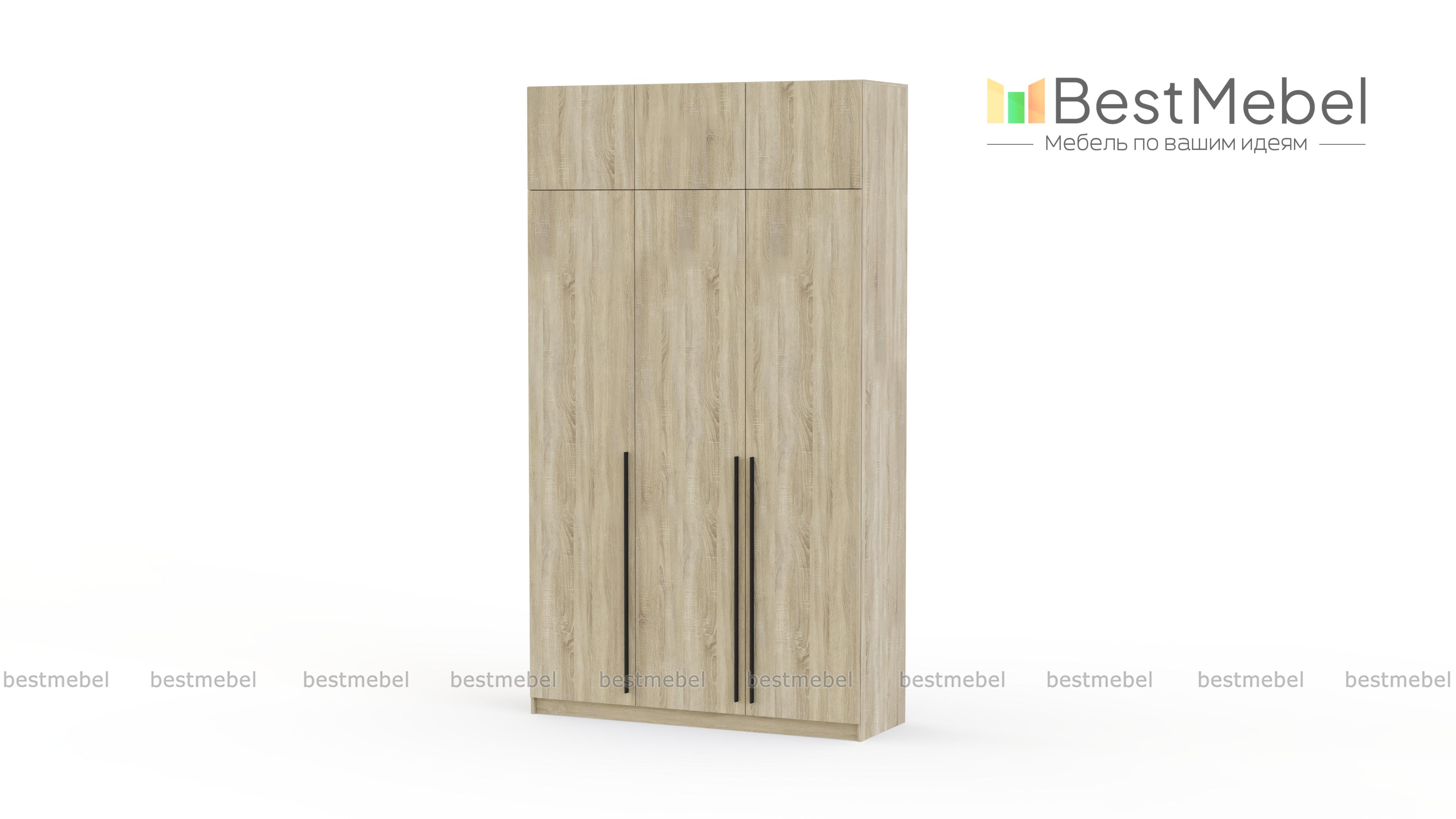 Шкаф распашной Айва 19 BMS с антресолью максимально эффективно использует пространство — от пола до потолка. Для вашего повседневного гардероба и редко используемых вещей предусмотрены просторные полки на разной высоте и платяная штанга. Сплошной фасад выполнен в классическом светлом оттенке, на дверцы установлены удлиненные контрастные ручки. Купить шкаф распашной Айва 19 BMS с изготовлением по индивидуальным размерам вы сможете на сайте нашего интернет-магазина.