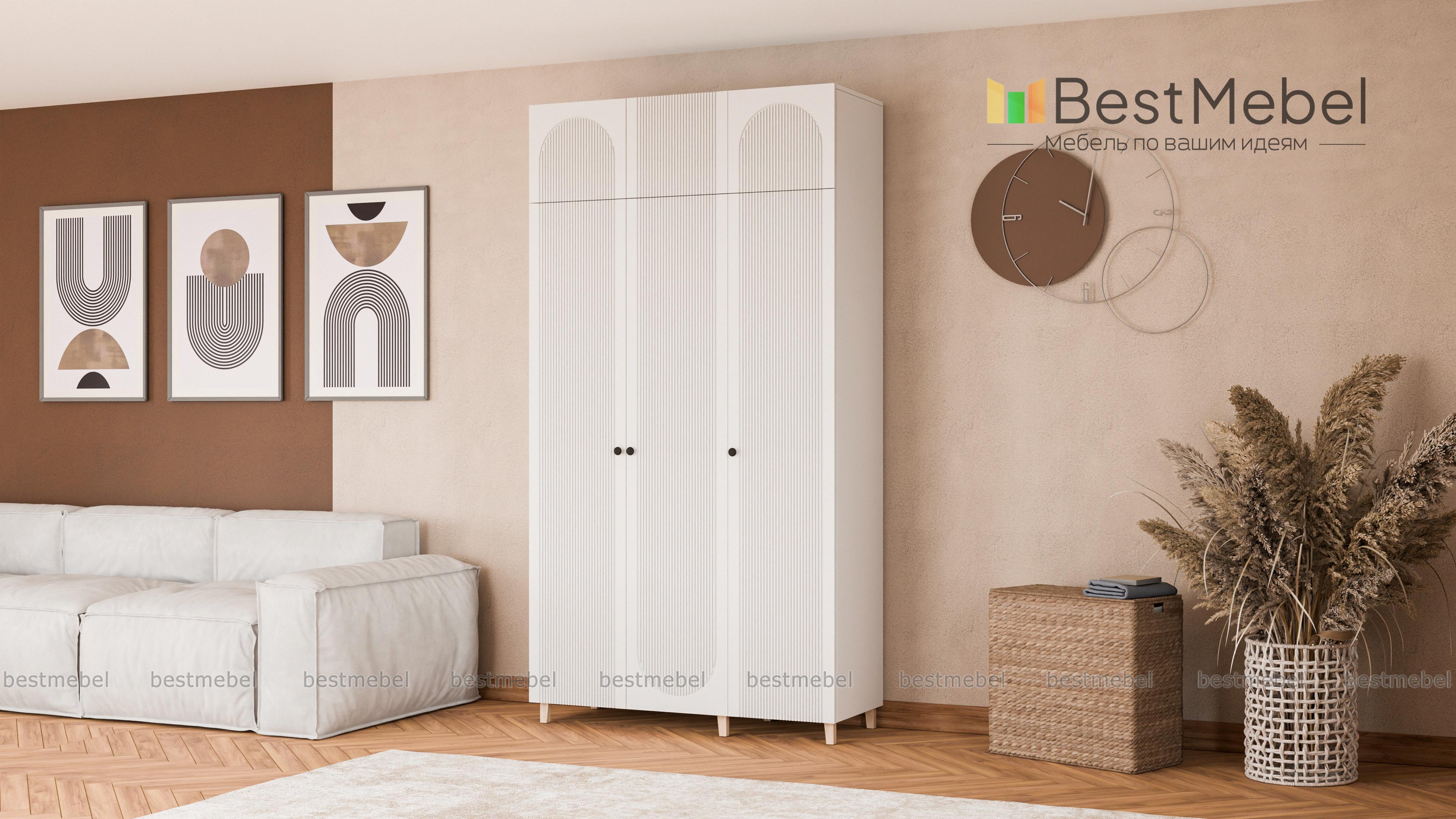 Шкаф распашной Рене 23 BMS поможет разместить еще больше вещей благодаря антресоли. Закрытые тремя дверцами отделения со штангой и полками для белья дополнены распашной секцией сверху. Светлый рифленый фасад шкафа выглядит изящно и современно, а качественные материалы обеспечивают поверхностям эстетичный вид, долговечность и простоту ухода. Купить шкаф распашной Рене 23 BMS можно на сайте нашего интернет-магазина в удобном размере и любых оттенках из каталога.