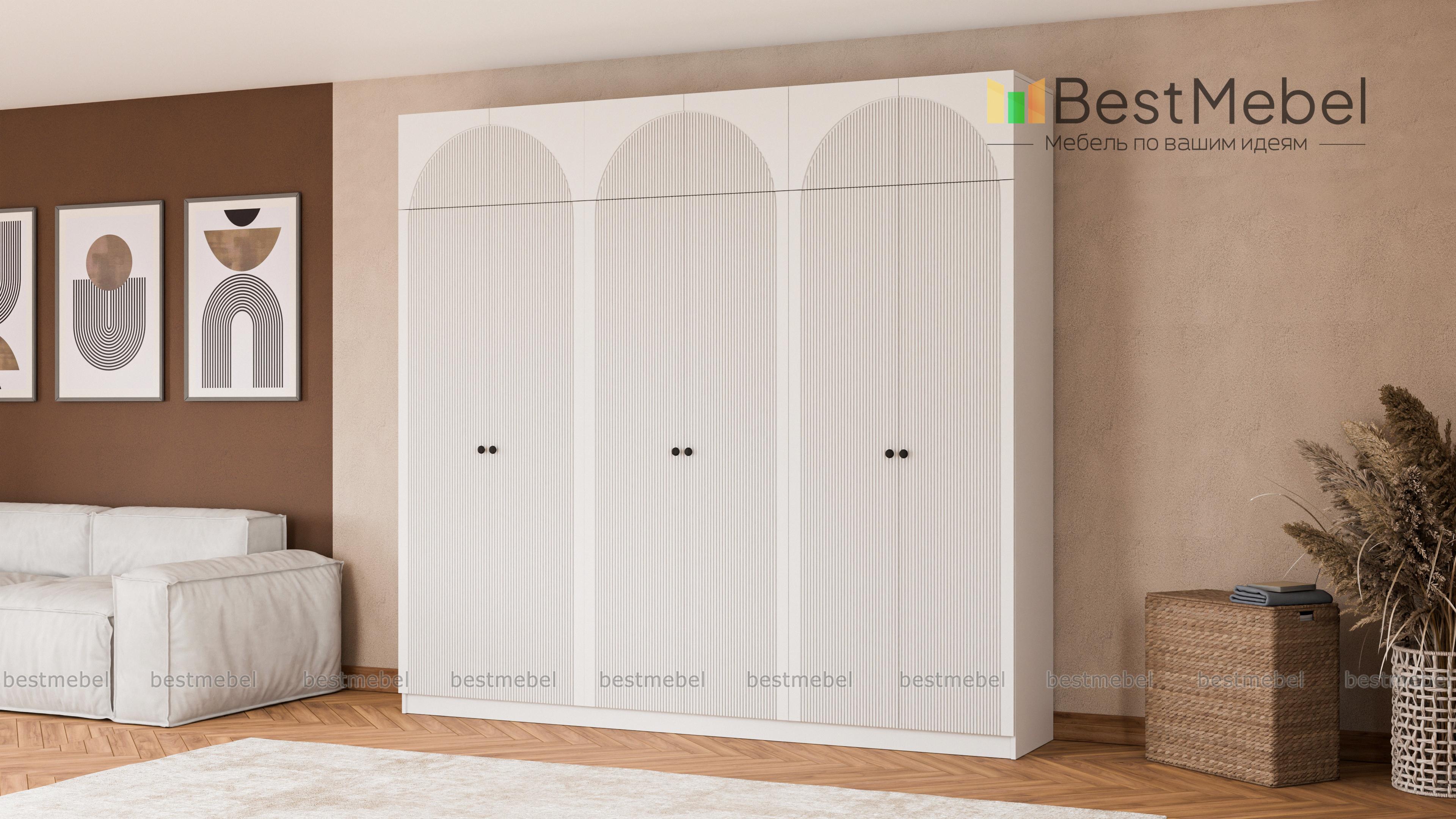 Шкаф распашной Вивьен 20 BMS — вместительная модель с шестью распашными дверцами и антресолью. Предназначенный для хранения одежды, обуви и белья, шкаф позволяет расположить как повседневные, так и несезонные, редко используемые вещи. Долговечные фасады изготовлены из МДФ в актуальном оттенке и украшены стильным рельефом, на дверцах — удобные круглые ручки. Купить шкаф распашной Вивьен 20 BMS в наиболее подходящем размере и цвете вы сможете на сайте нашего интернет-магазина.