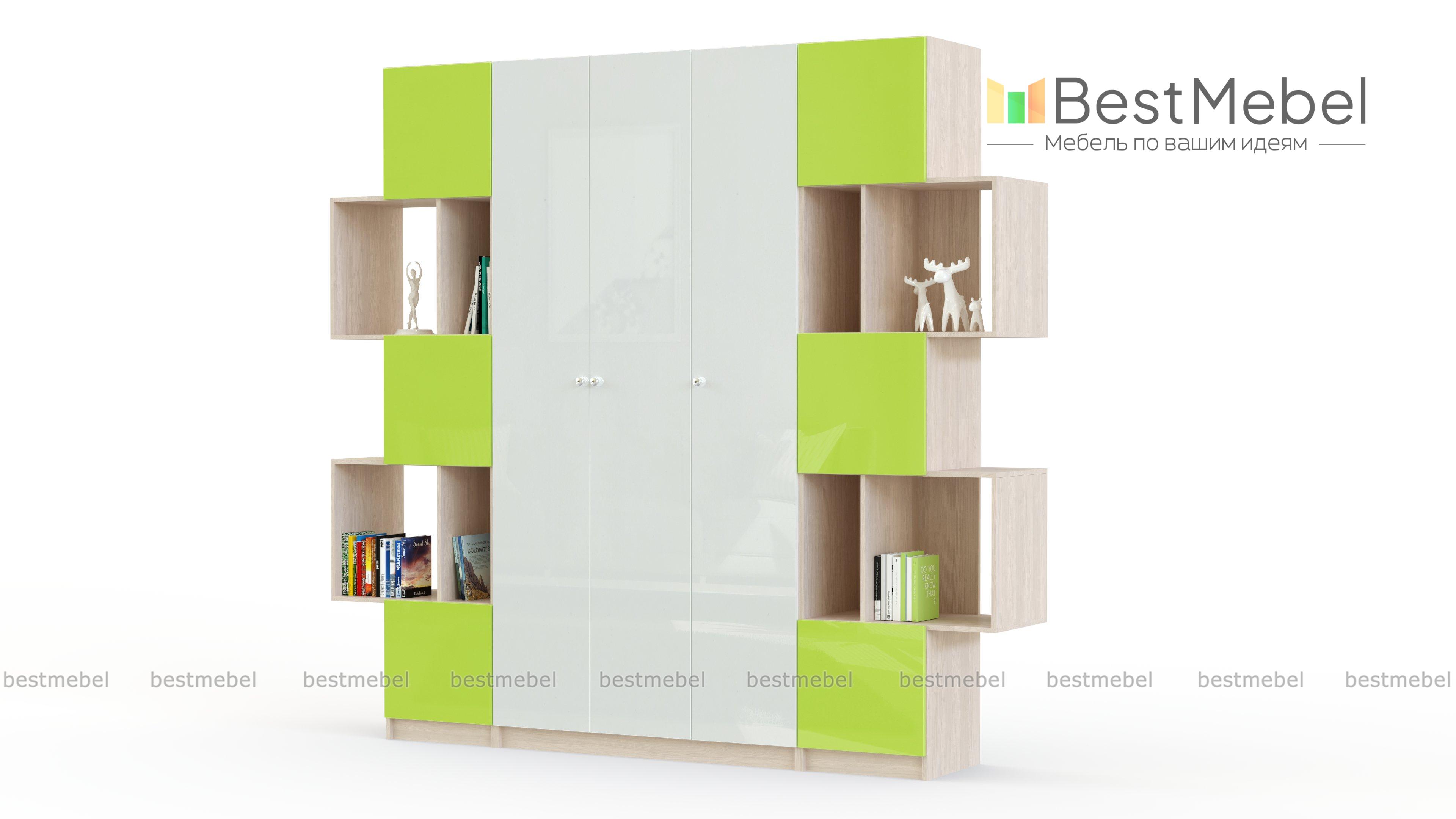 Шкаф-стеллаж Шелби-9 BMS привлекает ярким современным дизайном и высокой функциональностью. Практичная модель для гостиной или молодежной комнаты объединила трехдверный распашной шкаф и два симметрично расположенных стеллажа с глухими и открытыми секциями, эффектно выступающими за габариты. Вместительный, но при этом визуально легкий, шкаф выполнен в сочетании древесных тонов и светлого глянца. Купить шкаф-стеллаж Шелби-9 BMS и организовать удобное хранение одежды, бытовых вещей, книг и много другого вам поможет наш интернет-магазин.