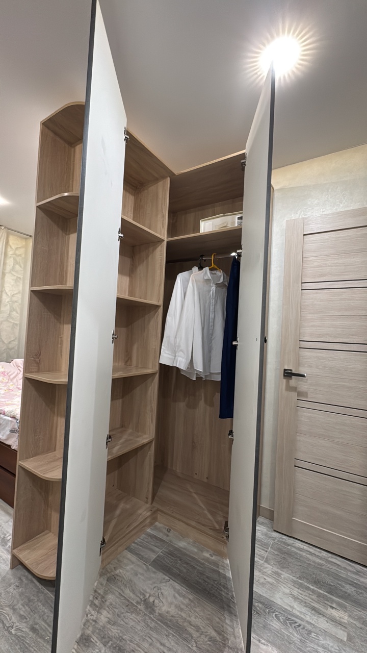 Долго искали шкаф подходящего размера, остановились на угловом. Несмотря на компактные размеры- вместительный, качественные материалы и фурнитура. Удобный в использовании. Экономит пространство- для небольших комнат, можно подогнать под свои размеры. Доставка вовремя. В назначенный день приехали два сборщика с инструментами, собрали быстро . Сборкой осталась довольна, спасибо! Получился отличный шкаф. Покупкой довольны.