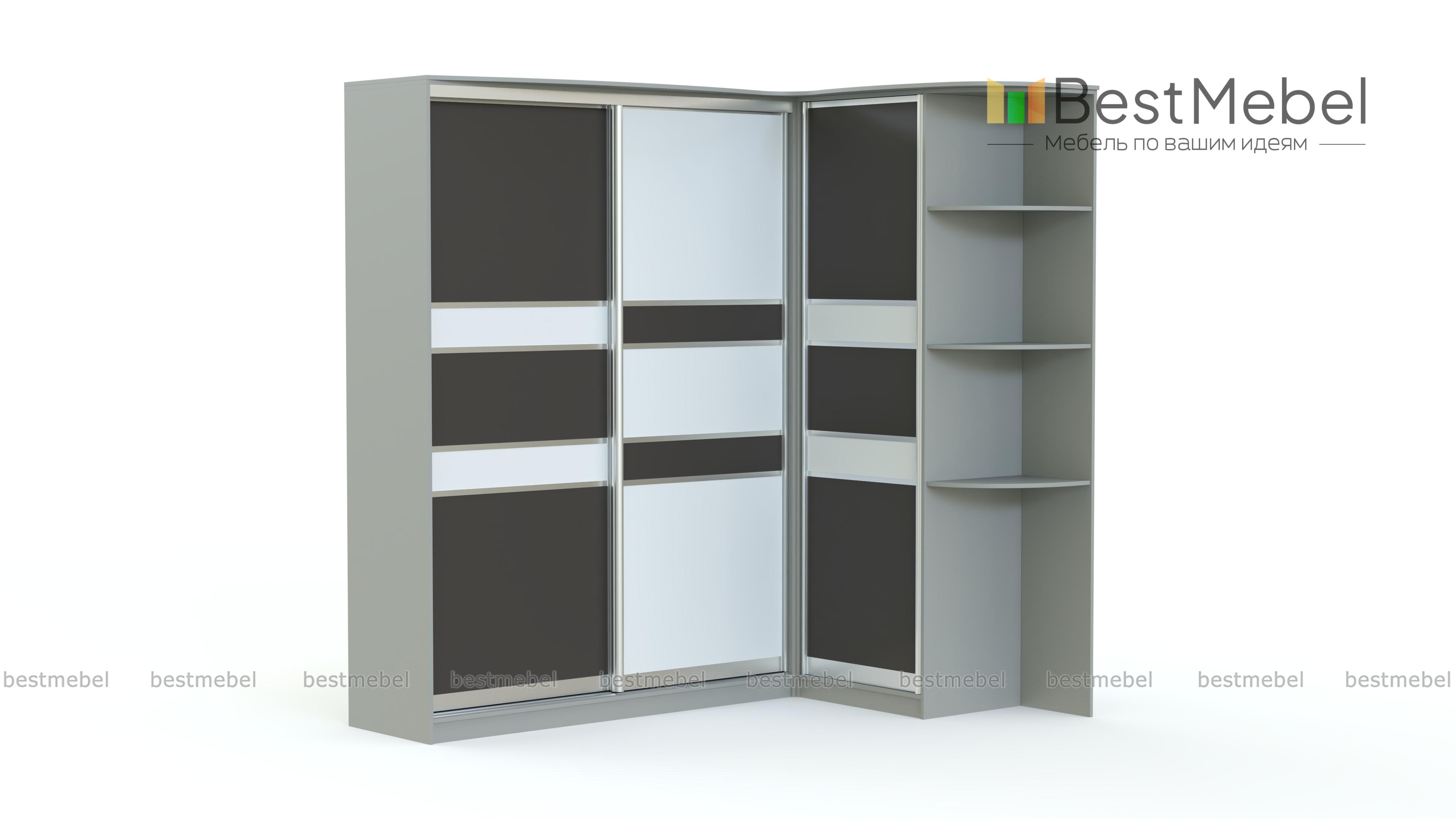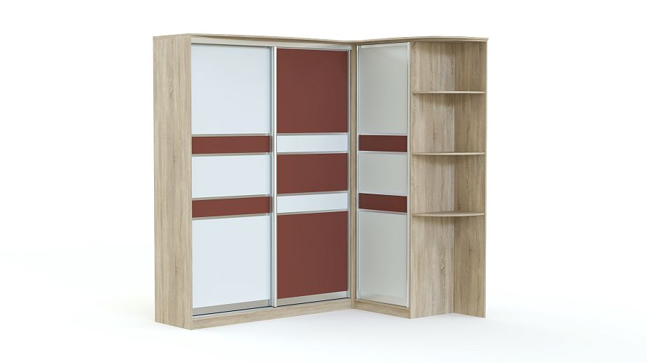 Угловой шкаф Композиция 91 BMS – многофункциональная модель для меблировки современной спальни, гостиной или прихожей. Практичная конструкция экономно использует доступное пространство и включает в себя двухдверный и однодверный шкафы со штангой и бельевыми полками, дополнительно возможно установить выдвижные ящики для мелочей. Приятным дополнением станет торцевой стеллаж для предметов декора и средств по уходу. Древесные расцветки и геометричный декор фасадов легко впишутся в интерьеры разного типа. Купить угловой шкаф Композиция 91 BMS и оптимизировать хранение вам поможет наш интернет-магазин.