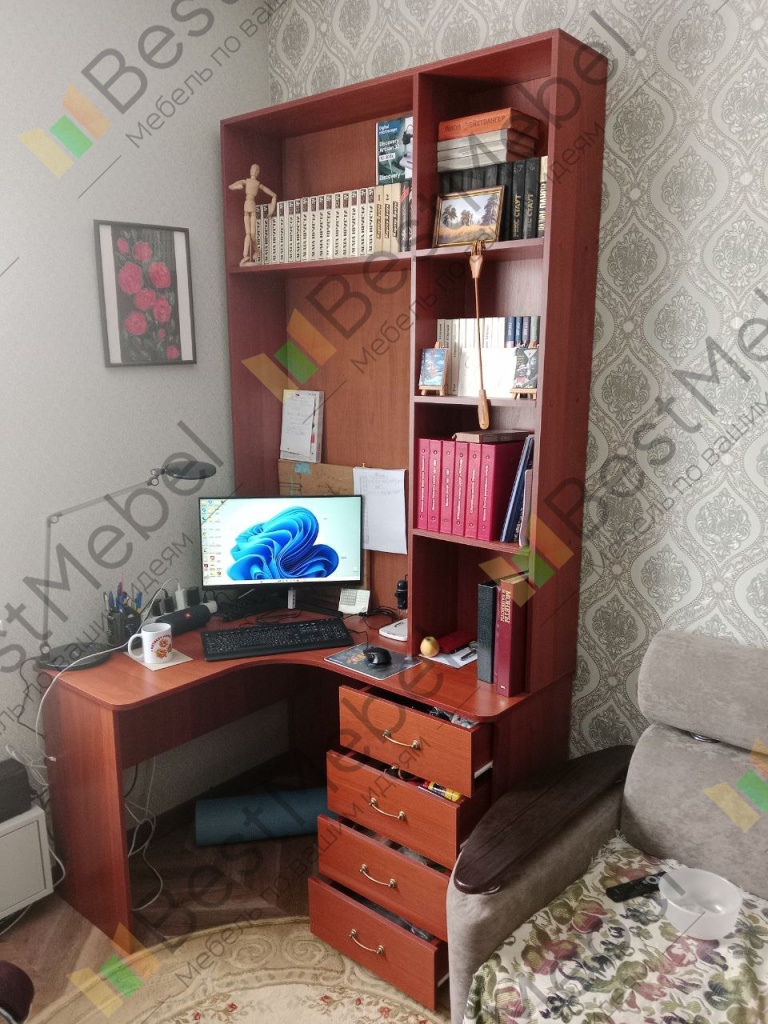 Приобрел стол 52.15 BMS и решил сразу добавить к нему надстройку. Остановился на этой модели. По моим размерам получилось вот такое шикарное изделие. Прелесть данного магазина-изготовление по индивидуальным размерам плюс цвет и фурнитура на выбор. Качество, удобство сборки и доставка на высоте! Молодцы, спасибо за работу! Покупкой очень доволен-теперь это мой уютный уголок для души.