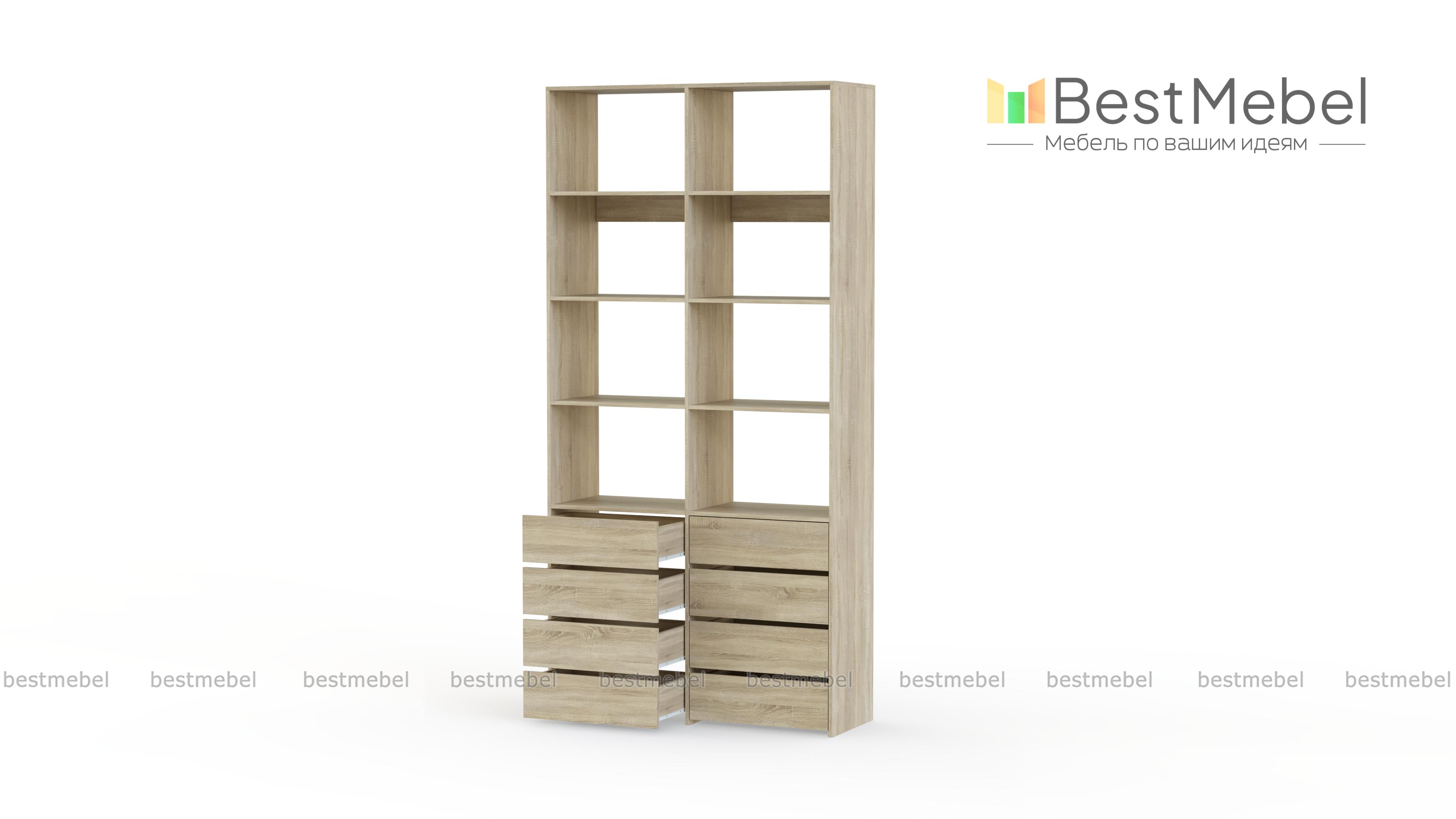 Стеллаж для одежды Мирта 40 BMS поможет вам грамотно спланировать пространство для хранения. Двухсекционная модель оборудована как открытыми полками, так и выдвижными ящиками, обеспечивая удобный доступ к разным предметам гардероба. Поверхности из ламинированной плиты отличаются износостойкостью и легко очищаются от загрязнений. Купить стеллаж для одежды Мирта 40 BMS с выбором наиболее подходящего оттенка и размеров приглашаем к нам в интернет-магазин.