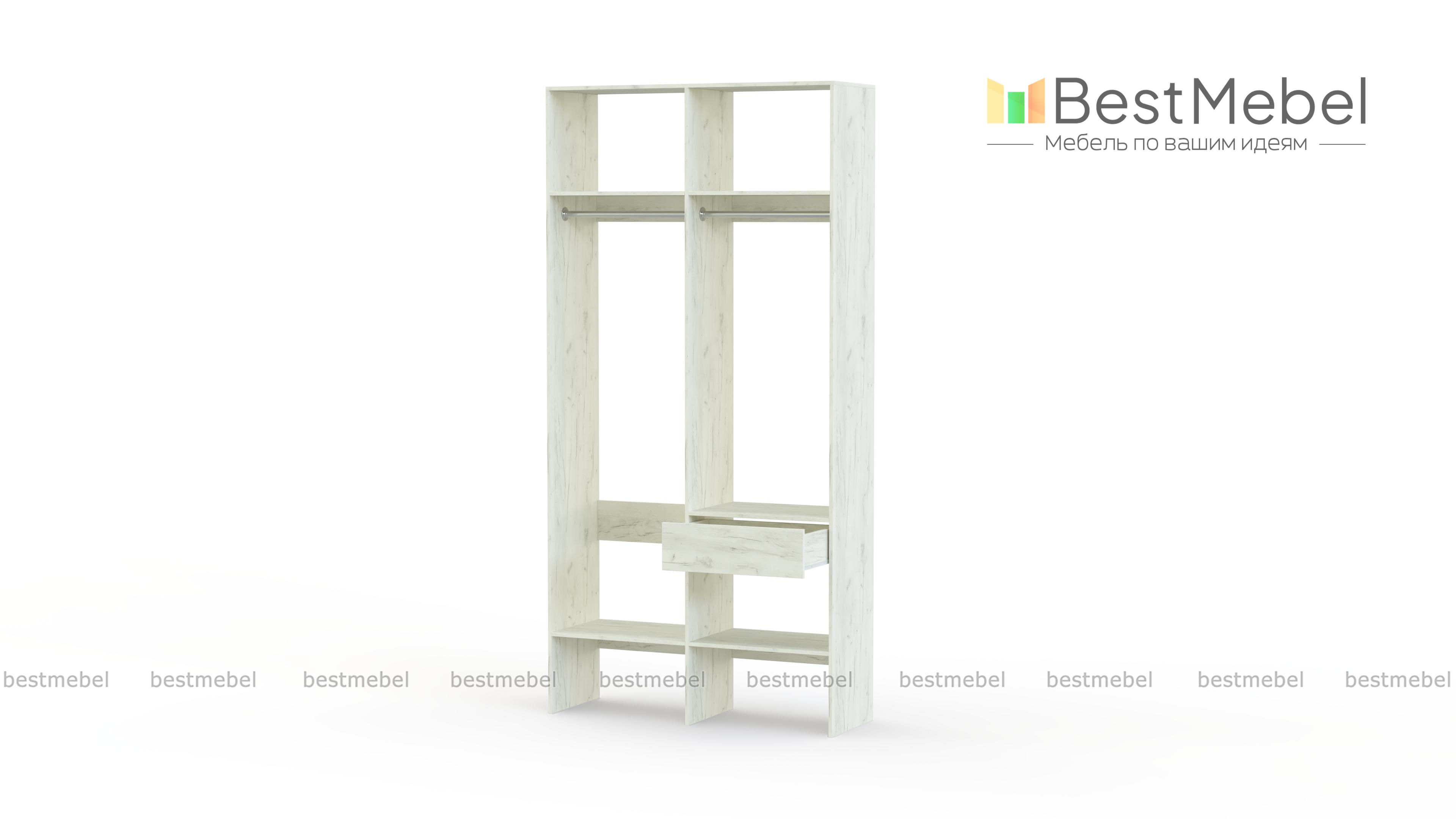Стеллаж для одежды Мирта 42 BMS для гардеробной или прихожей выполнен в нейтральном светлом оттенке из ламинированной ДСП. Компактная и легкая двухсекционная конструкция объединила два платяных отделения разной высоты, верхние и нижние полки, а также выдвижной ящик, предназначенный для мелочей. В открытом стеллаже будут всегда на виду ваша повседневная одежда и обувь. Купить стеллаж для одежды Мирта 42 BMS вы сможете в нашем интернет-магазине, самостоятельно подобрав размеры и цвет.