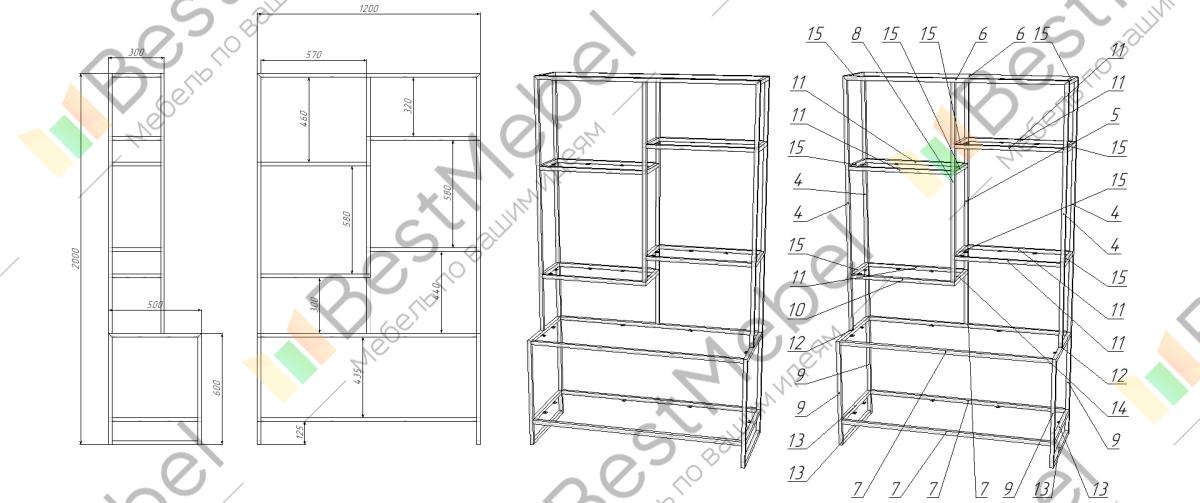 Конструкция | С полками, Открытая, Без задней стенки |