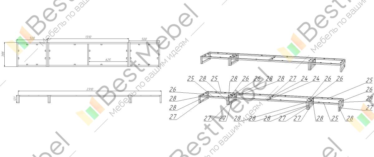 Товар выполнен из ЛДСП толщиной 22 мм. Материал и цвет можно изменить в конфигураторе.