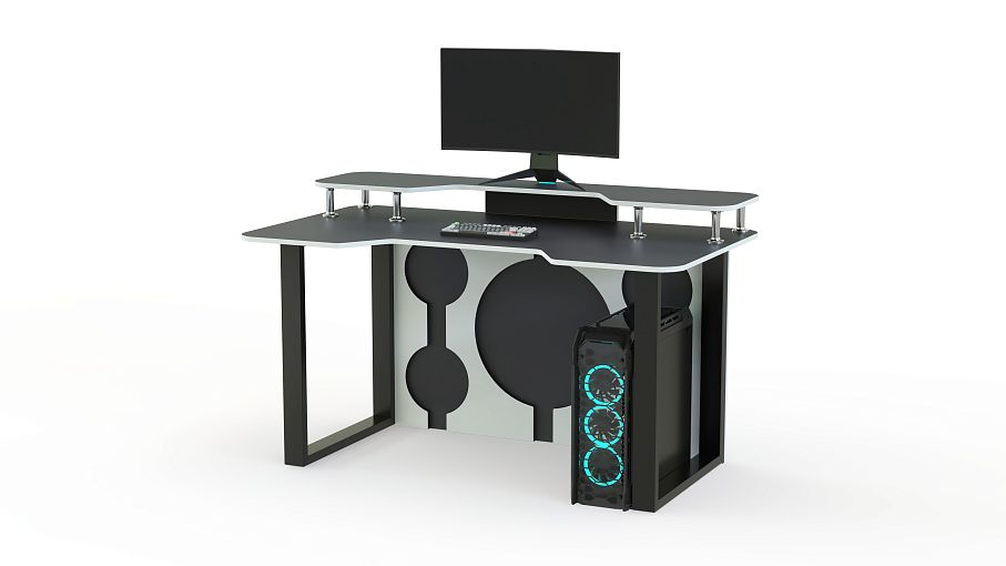 Геймерский стол Брук тип 9 BMS с рамочными опорами и декоративными вырезами задней стенки идеально вписывается в интерьеры стиля хай-тек или индастриал. Компактный, легкий и устойчивый, стол оборудован просторной столешницей с эргономичным вырезом. Разместить на удобной высоте монитор и современную периферию позволит надстройка на хромированных опорах. Купить геймерский стол Брук тип 9 BMS вы сможете в нашем интернет-магазине с подбором цвета по каталогу.