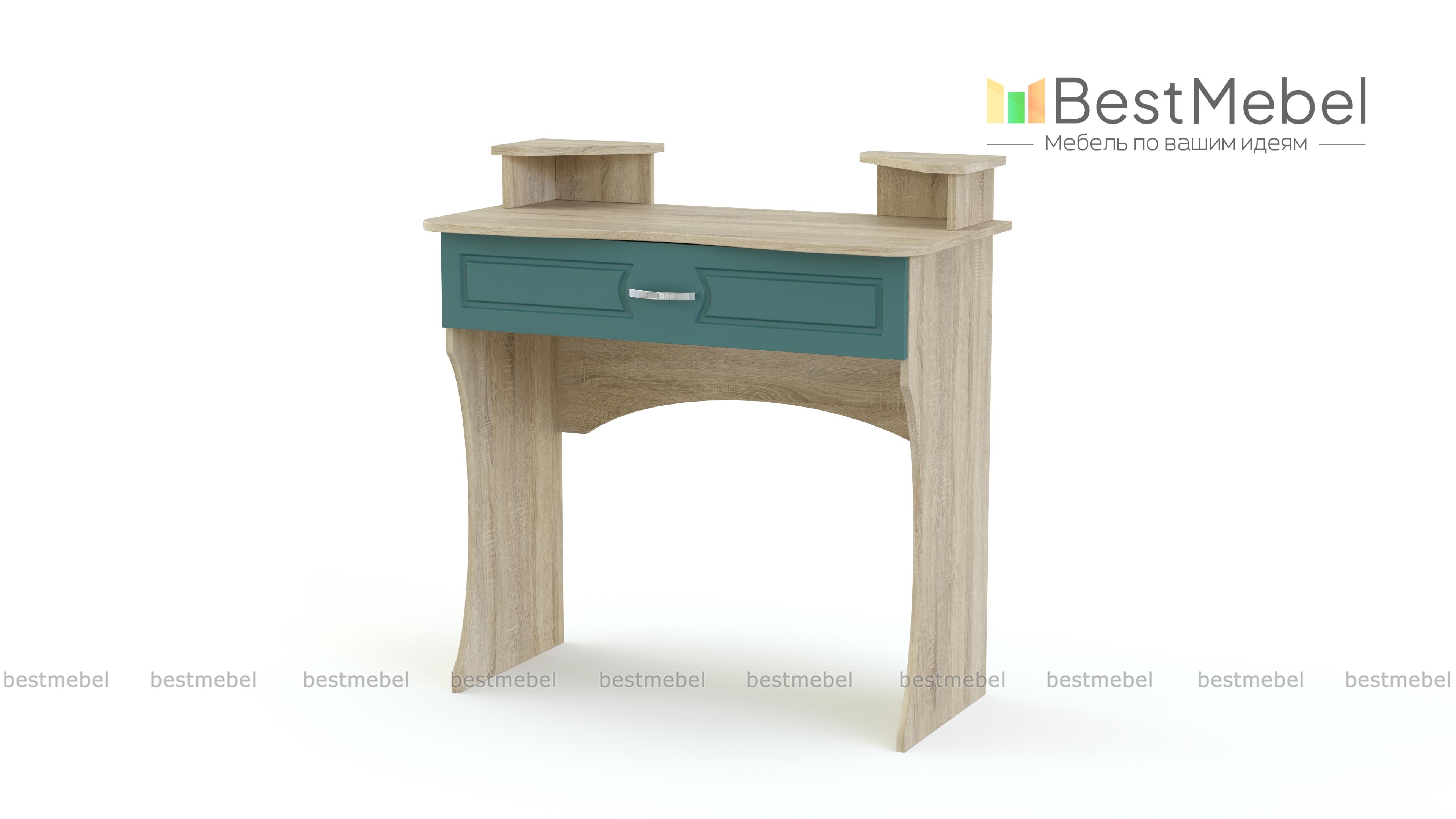 Туалетный столик Афродита 10 BMS выполнен в классическом стиле и гармонично дополнит меблировку элегантной спальни в теплых древесных тонах. Модель с фигурно вырезанными опорами оборудована эргономичной столешницей с вместительным ящиком для мелочей и двумя угловыми надстройками с полочками и нишами. Фасад ящика декорирован неброской фрезеровкой. Купить Туалетный столик Афродита 10 BMS для комфортного ухода за собой вы сможете недорого в нашем интернет-магазине.