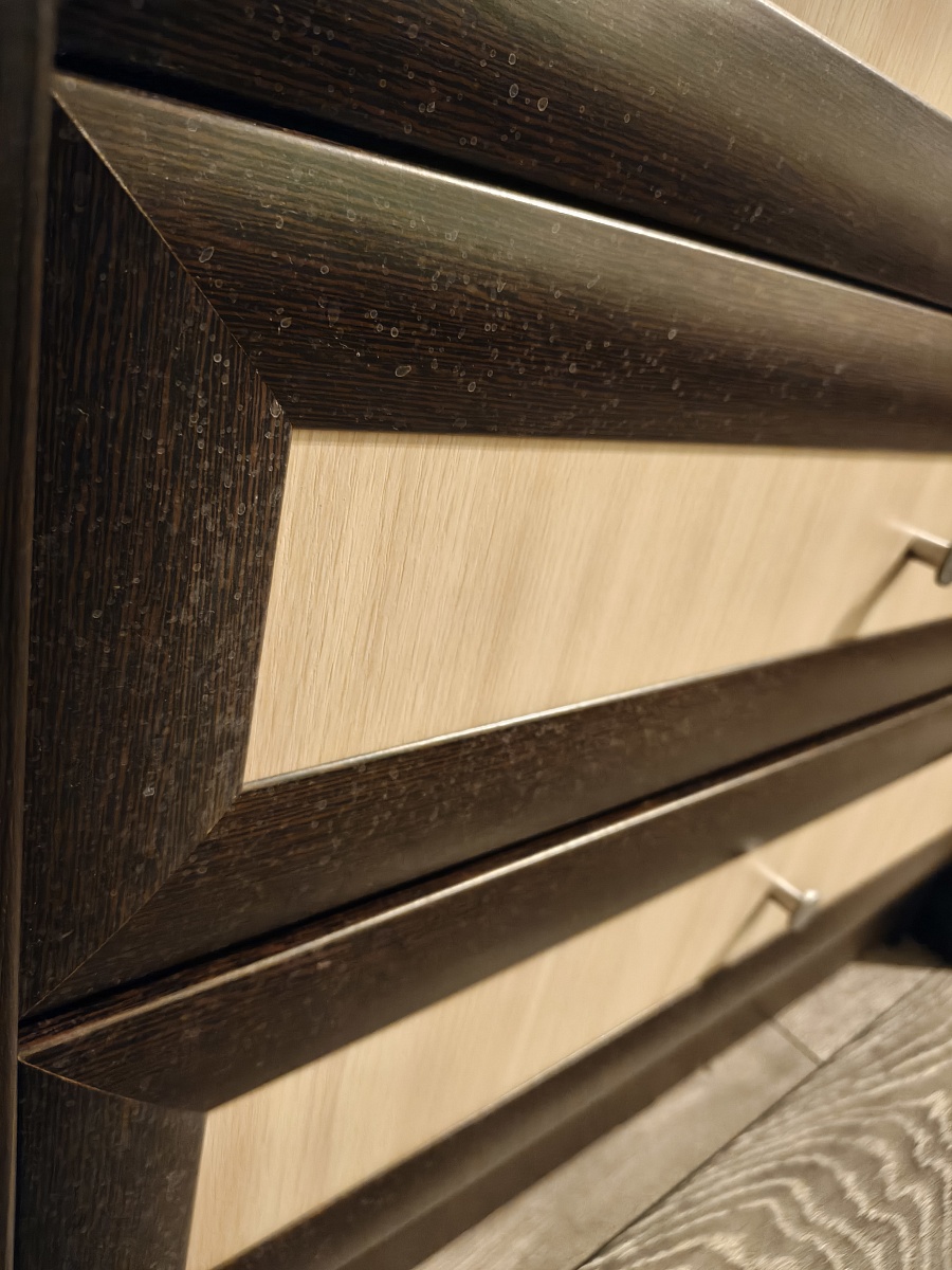Выбрала шкаф, заказала, оплатила в личном кабинете. Мне перезвонил менеджер, и мы обговорили детали. В ходе диалога, мне понадобилось внести несколько изменений по поводу наполнения изделия, потом я ещё раз звонила и просила кое-что изменить. Разница в цене получилась в мою пользу, вернули не сразу, похоже, что про меня забыли. Все сотрудники очень терпеливые и вежливые. Ждала изделие ровно столько, сколько мне сказали при первом общении. Когда шкаф был готов, меня оповестили, что передают в доставку. Доставка была Деловыми линиями, а это лотерея. Приехал равнодушный водитель, сказал, что у нас без подъёма на этаж и выгрузил детали из машины. Когда муж забирал последнюю коробку, водитель напомнил, что подъём оплачивается на месте. Через несколько дней со мной связался сборщик, и мы договорились на удобное время. Пришёл весёлый мужчина, который собирал шкаф и подпевал своему телефону, на котором он включил музыку на время работы. К работе подошёл творчески, максимально удобно установил шкаф так, что он стоит надёжно. Выглядит вполне крепким. Единственное, что я не разобралась, как за покрытием снаружи ухаживать. Обычной тряпкой с водой не удалось оттереть брызги, после того, как животные отряхиваются.Хотелось бы понимания, что за покрытие используется по периметру дверей, потому что мне нужно было немножко другое. Плюс скудный выбор ручек для данной модели, из-за чего у меня в комнате этот шкаф не гармонирует с другой мебелью. В целом я довольна. При необходимости новой мебели, буду обращаться ещё.