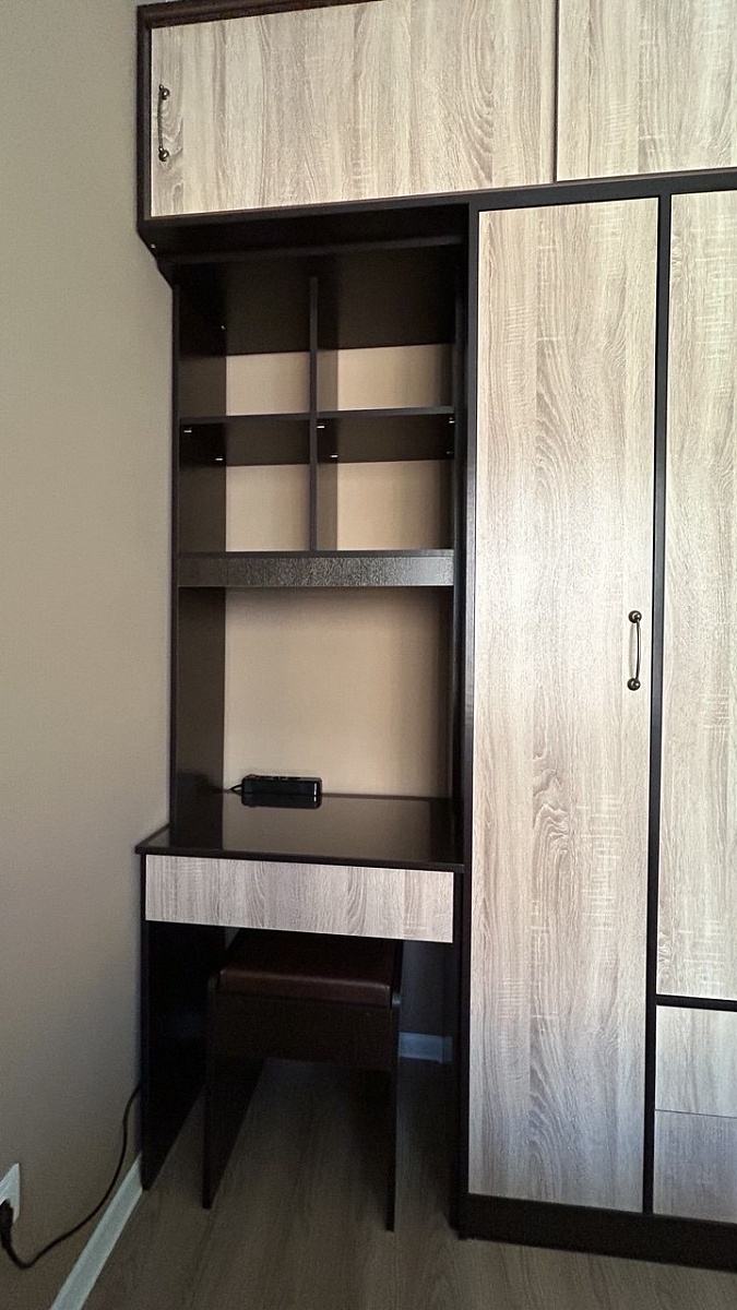 Это второй товар, который мы заказываем в данной фирме.Подкупает то, что мебель по индивидуальным замерам - встает прям чики-пуки. Площадь комнаты небольшая, а надо вместить и спальное место, и гардеробную , и учебный уголок.Плюс широкая цветовая гамма - подбирали под купленную ранее кровать.Собирать не сложно. В этот раз вложили схему сборки в очень мелком масштабе. Написала в службу поддержки - оперативно выслали в электронном виде на почту.При сборке не хватило одно детали - заключительная, на полную сборку не повлияло. Довезли в течении двух дней.После данного шкафа заказали еще туалетный столик. Получился прям гарнитур спальный.Рекомендую