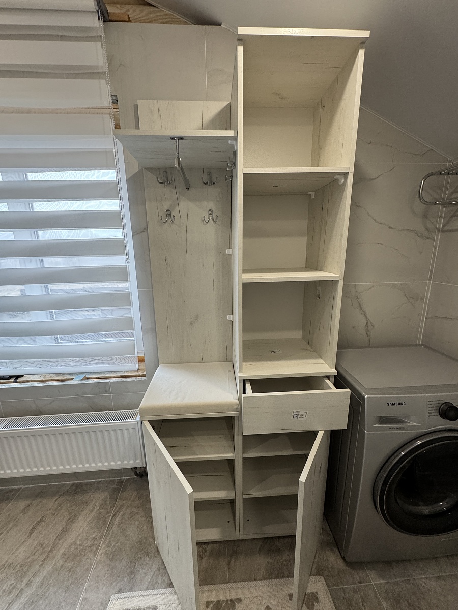 Хорошая прихожая, приятная цена. Подогнали все под свои размеры, шкаф использовали для прохода в гардеробную. Все пожелания были выполнены. Смотрится очень красиво, ничего лишнего нет. Некие косячки были, 2 поломанных крючка, но не проблема заказал на WB.Собирали сами, сборка не сложная, если бы инструкцию сделали более подробнее, было бы еще легче