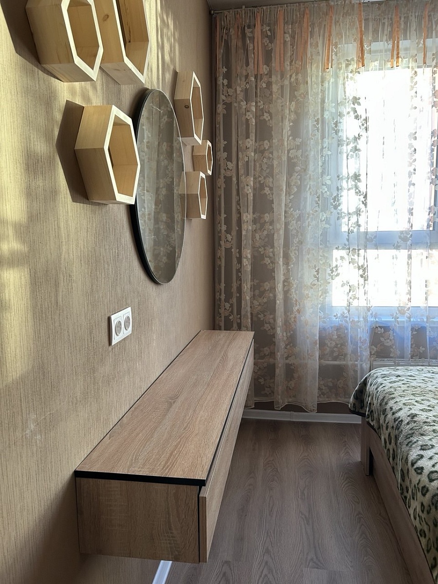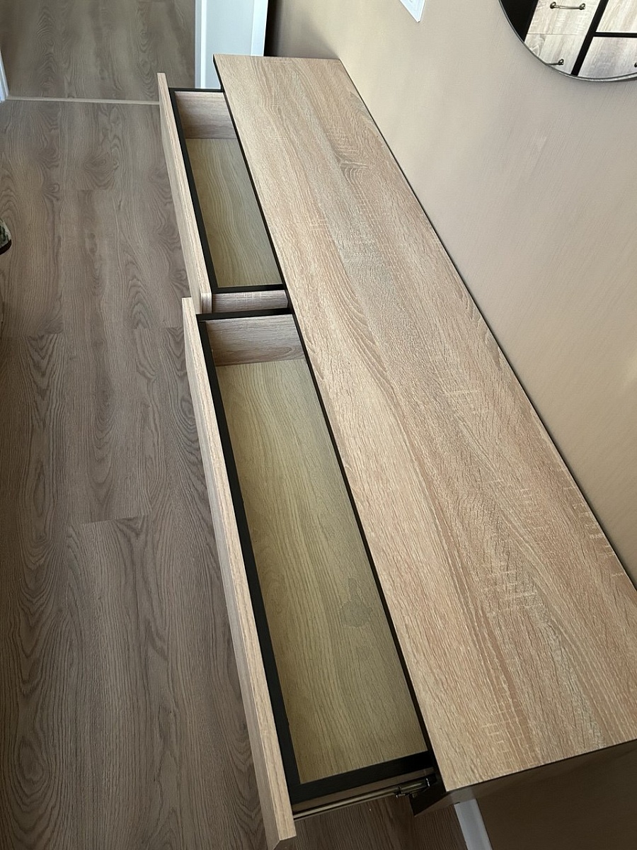 Это третий товар, заказанный в BestMebel. До этого заказывали шкаф в коридор и шкаф в спальную комнату. Туалетный столик подбирали под уже купленную кровать и шкаф.Хорошо,;что можно размеры выбрать под себя.Большой плюс - бонусная система - за предыдущий заказ прилетело 3 с лишним тысячи бонусов, которые списали при оформлении данного столика.Изначально оператор говорил, что крепления к стене в комплекте не идут. Все было в комплекте - и крепления стола и крепления к стене.