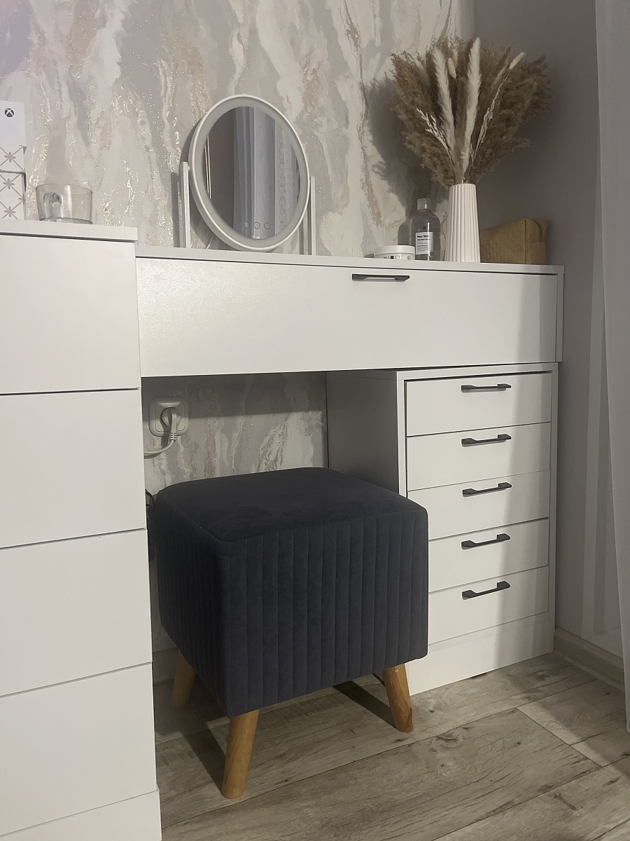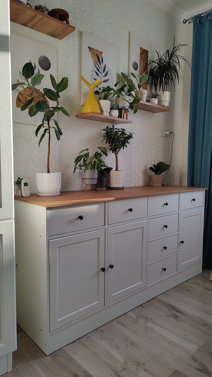 Заказ № 00000848580Комод классный, за свою цену вообще. Очень вместительный и удобный, направляющие шариковые хорошие, ящики выкатываются полностью, что тоже удобно. Ручки устанавливали сами, свои. Заказывала без ручек. Размеры комода немного меняли.