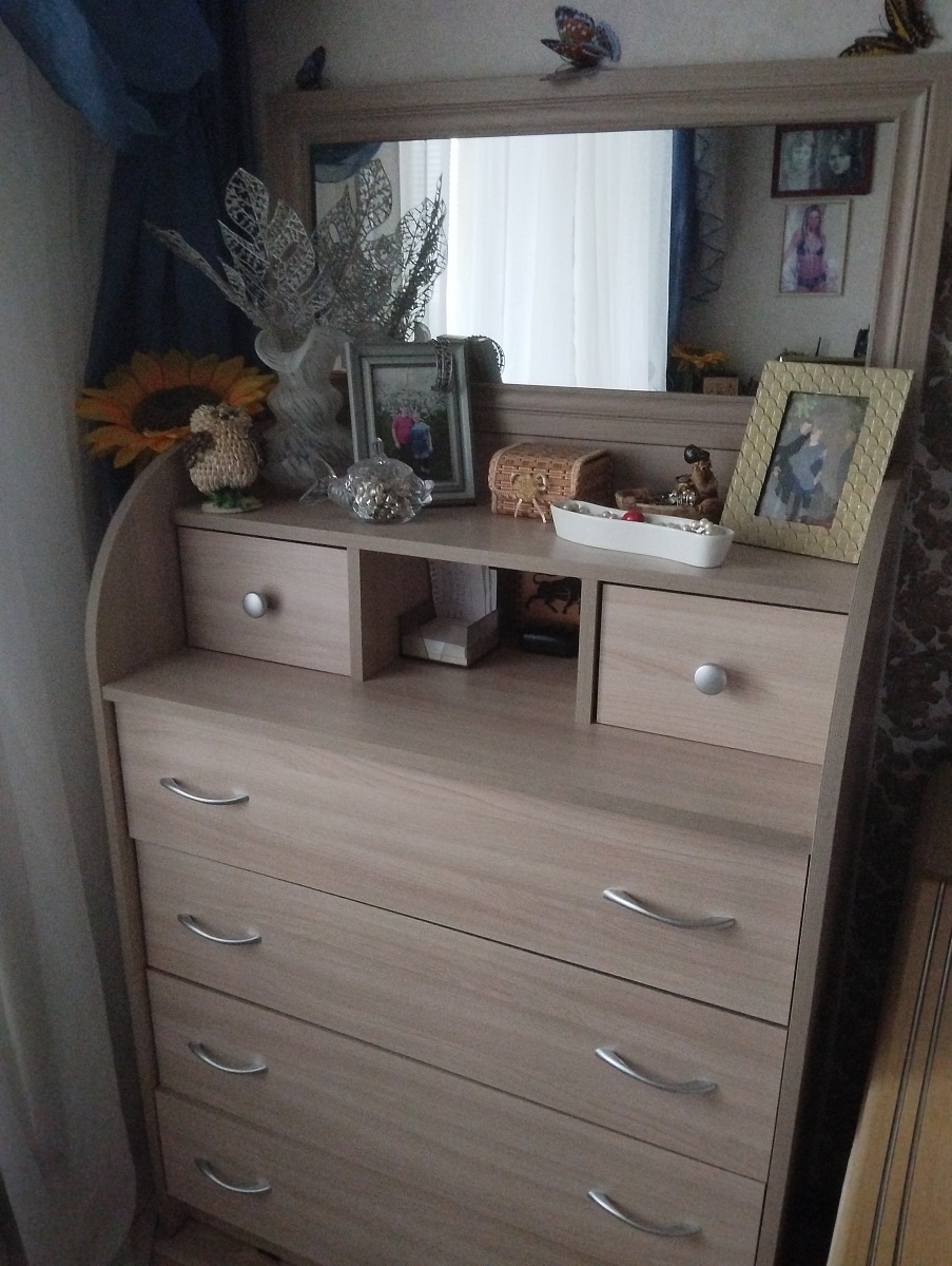 Комод прекрасен. Очень компактный. Собрали быстро. Доставка очень быстро пришла и подняли без проблем.