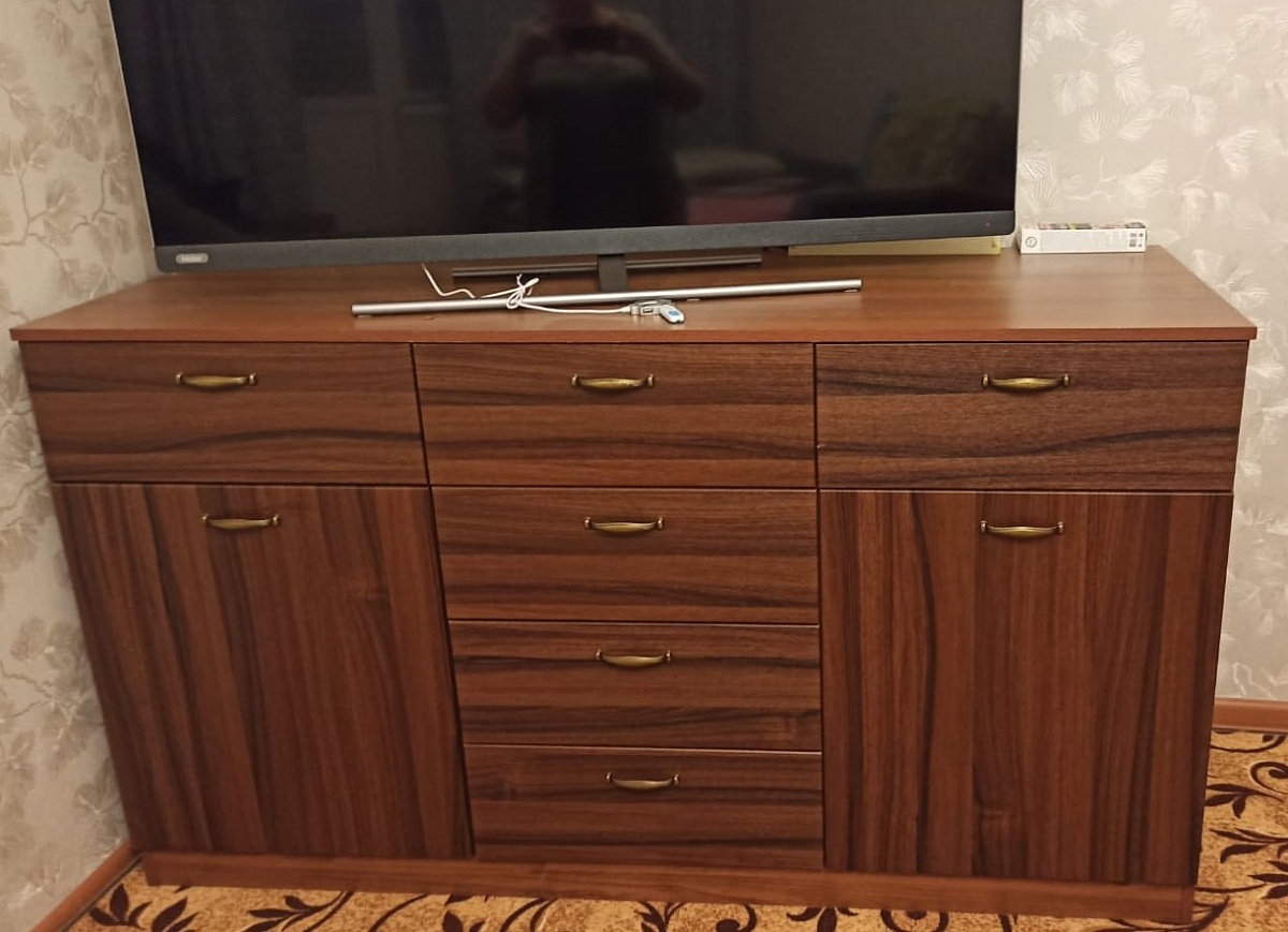 Заказ 00000830911, изделие ЭСКИЗ №00000830911 Комод Лимбо 2 BMS (1600х900х600)Отличный комод. Огромный, вместительный , телевизор с диагональю 55 дюймов, смотрится игрушечным. Цена доступная, сборщик молодец. Всем спасибо.