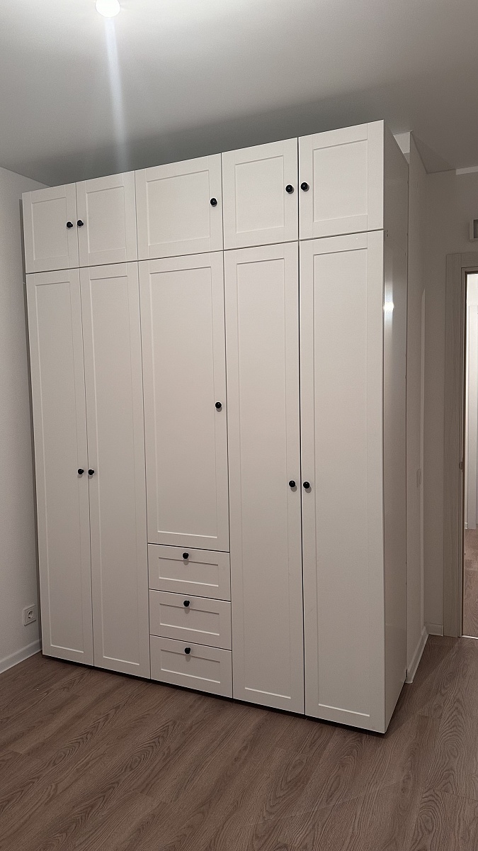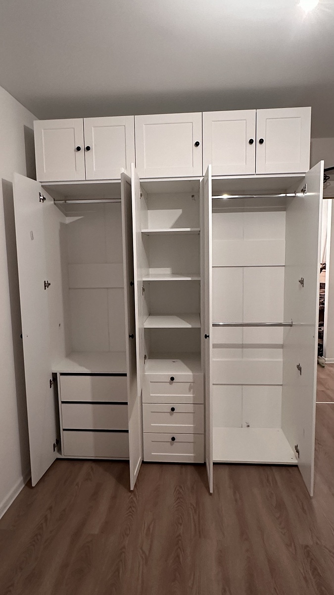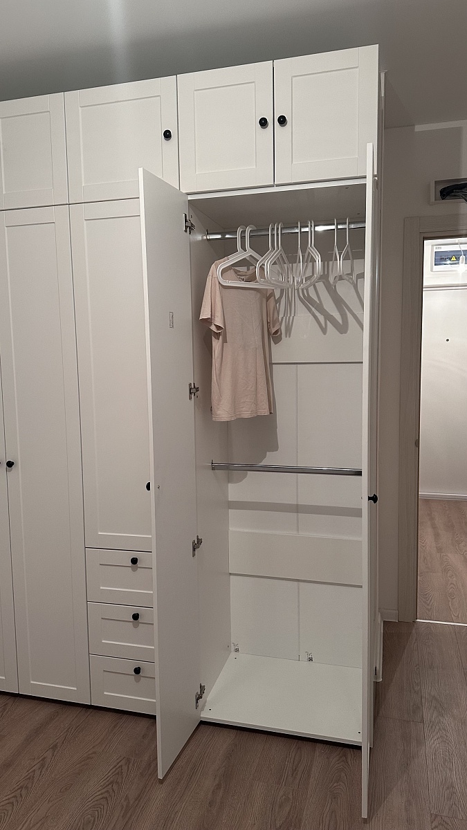Я очень довольна шкафом, сохранила все стандартные характеристики, кроме размеров, выбрала из предложенных. Долго искала шкаф с внутренним наполнением именно с ящиками, двухуровневыми перекладинами, это большая редкость даже в best mebel, это единственный вариант и мне он подошёл идеально! Спасибо!Сделали очень быстро, это огромное преимущество, был небольшой скол, но я закрыла на это глаза.