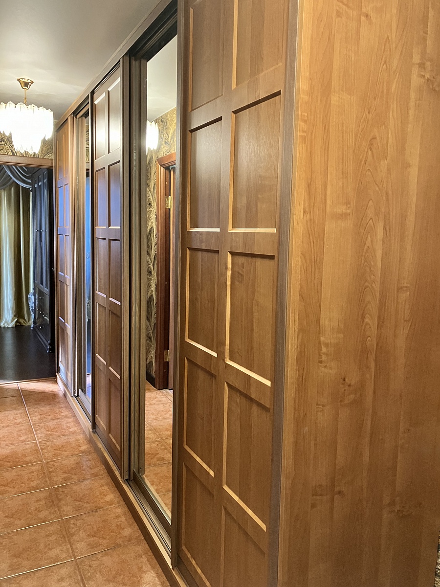 Закала шкаф 15 сентября 2024. По своим параметрам. Полностью МДФ. Цвет ольха 4647. Внутри цвет также в цвет фасада и задняя стенка (оргалит в цвет). Система дверей Версаль ( хочу сказать сразу съедает размер шкафа внутри (глубина) на 10 см) . Карниз к этому шкафу не смотрится. Подобрать профиль ( на двери) в цвет фасада невозможно, как на фото , заказала - орех благородный. Заказывала одну дверь как на фото, глухая + зеркало, но данную дверь мне так и не установили из-за брака. Если Вам повезет, заказывайте. Смотрится очень красиво !!!! По итогу шкаф собрали 1 ноября. Три раза писала рекламацию. Двери (фасад)  привозили постоянно со сколами. Отдел рекламации работает быстро. Замена проходила в течении 10 дней.