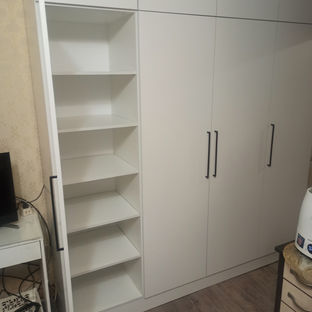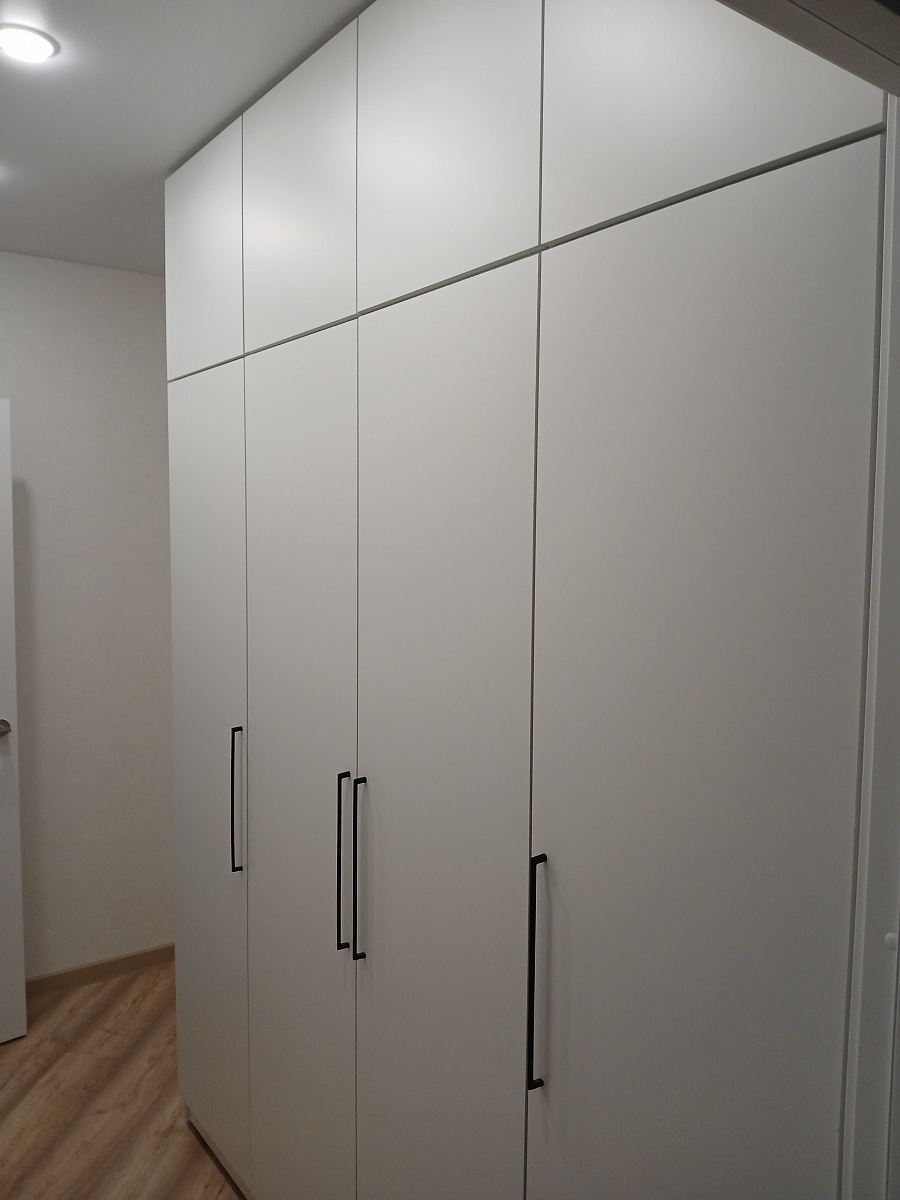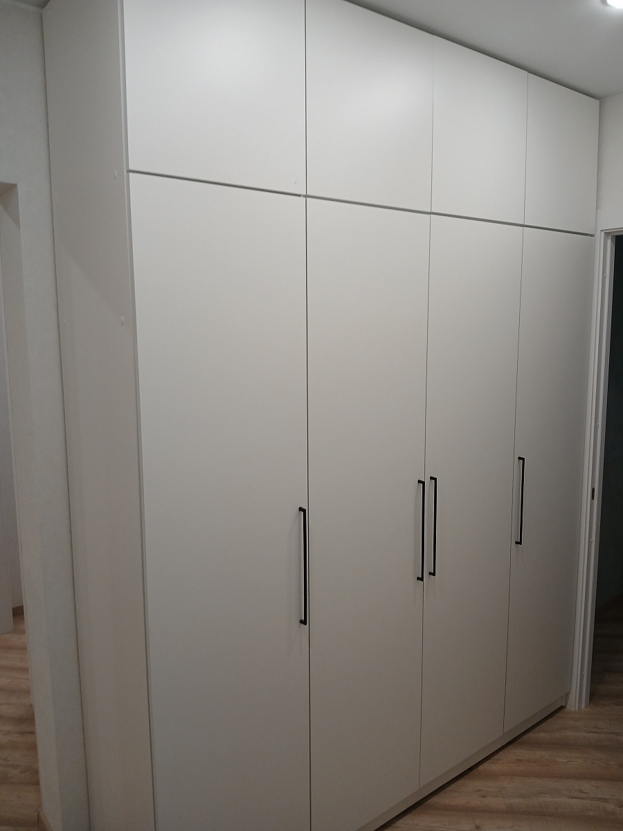 Заказ 00000788857, Заказали шкаф по индивидуальным размерам Шкаф распашной Остин Лайт 6 BMS (2100х2400х500) + доп. Это петли с доводчиками и скрытые крепления. Цена вышла намного ниже, чем у конкурентов. Заказала сборку на следующий день приехали за 2,5 часа собрали эту громадину. Шкафом довольна, похож на икею пакс. Очень всё функционально. Потом ещё в дополнение купила навесную полку там же, по индивидуальным размерам.