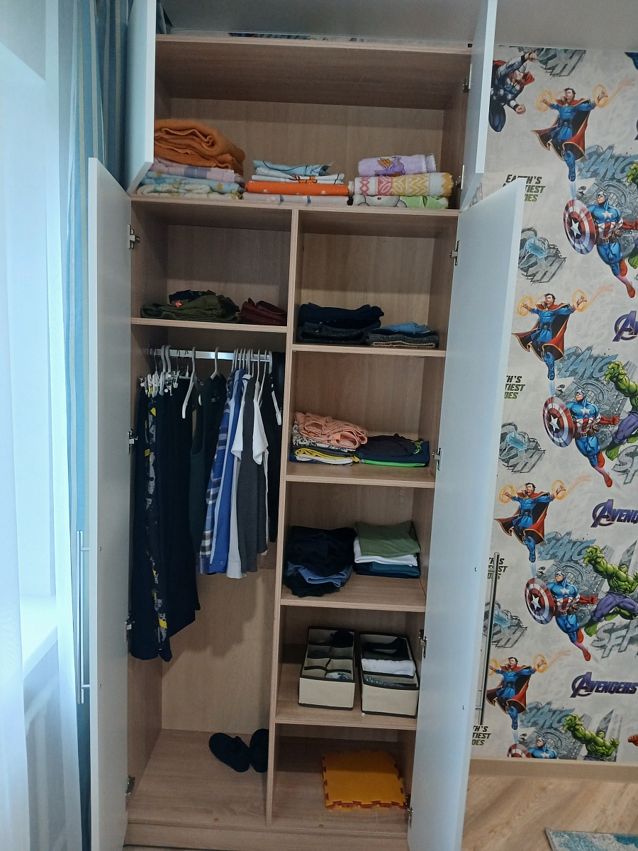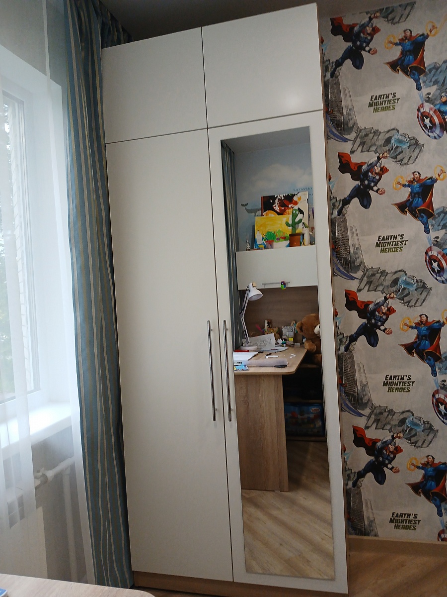 Заказывал по индивидуальным размерам, заказ 00000809230. Доставили быстро, собирал сам, по схеме ничего сложного. Ребёнку в детскую отличный шкаф, не первый мой заказ.