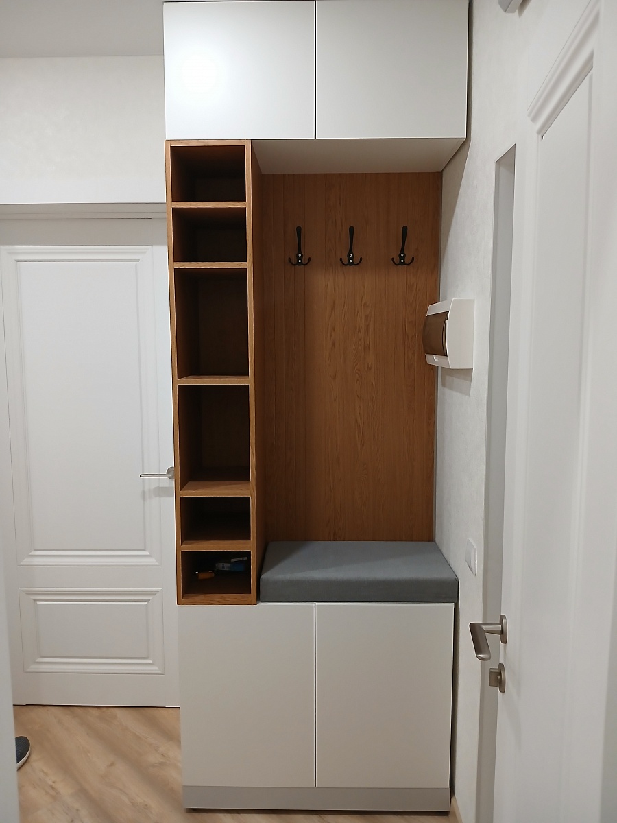 Заказывал по индивидуальным размерам, доставили быстро, оплата при получении, собирал сам, по схеме не сложно. Красивая прихожая получилась, не первый мой заказ, хорошая мебель по адекватным ценам.