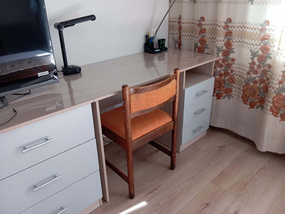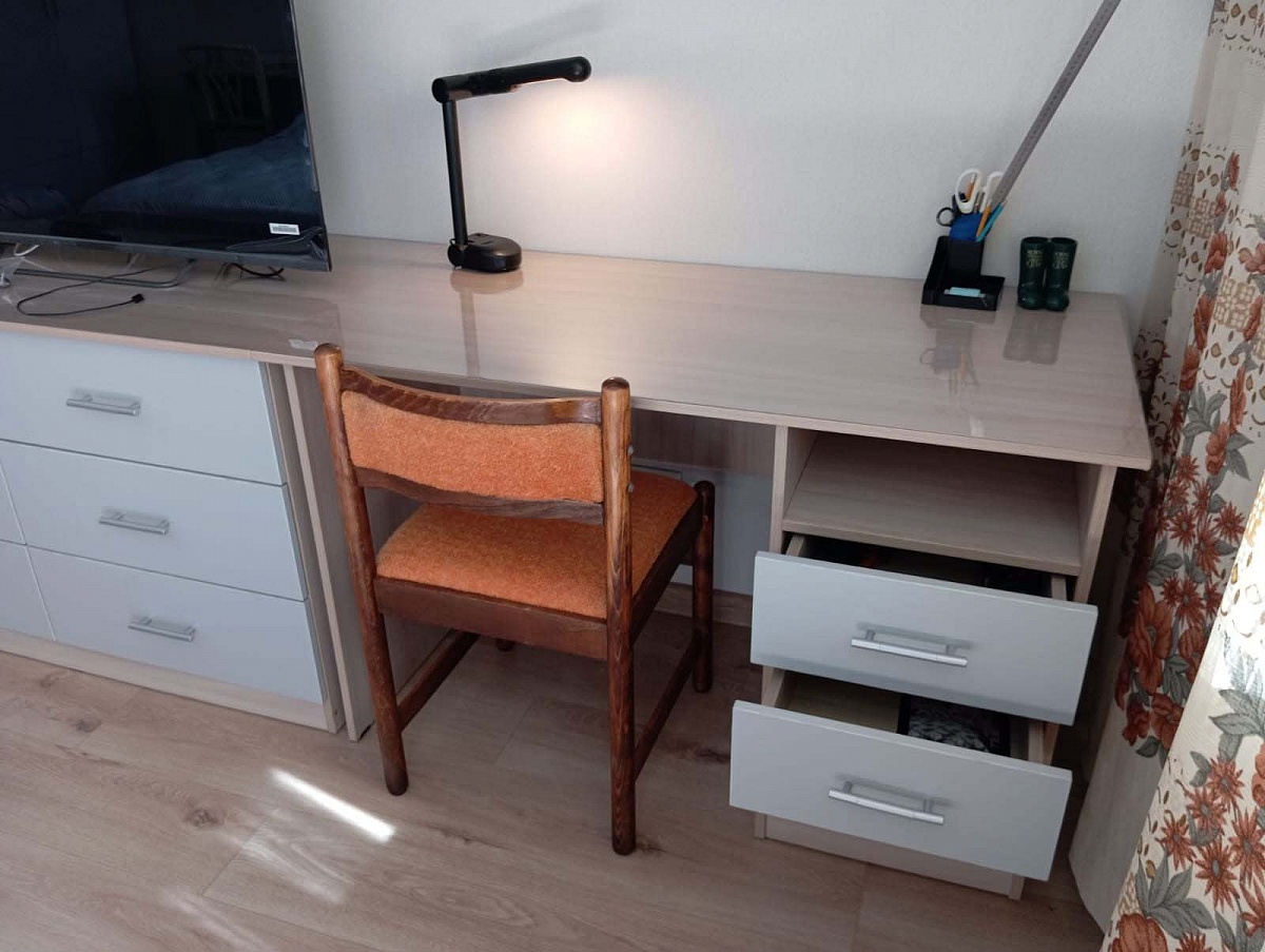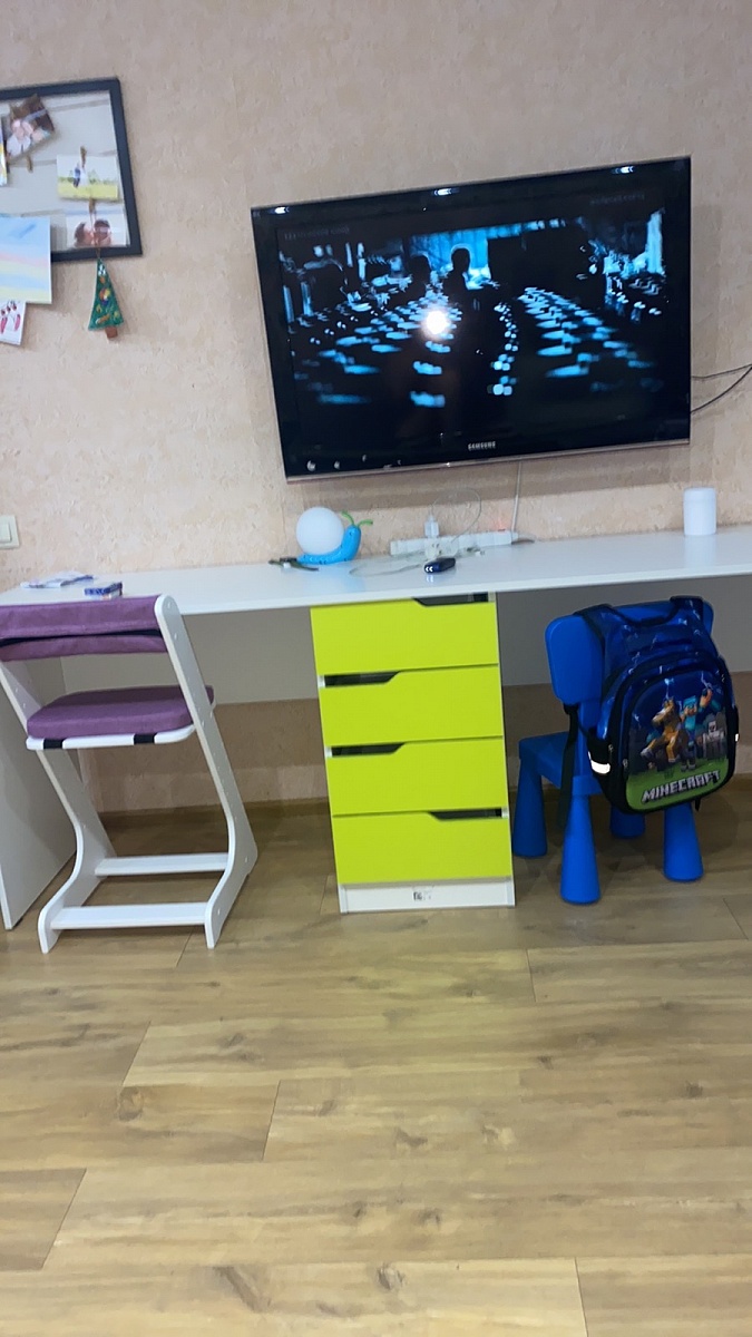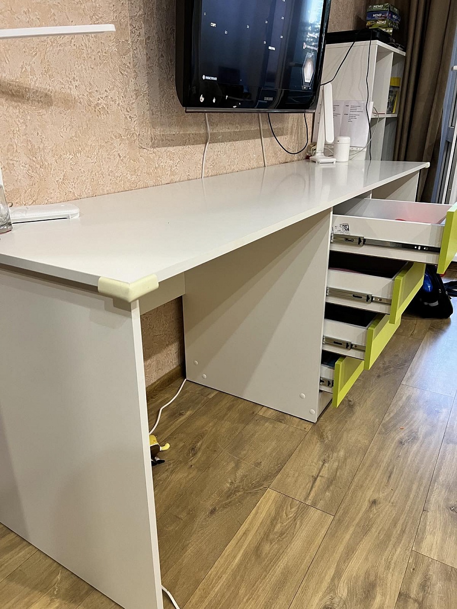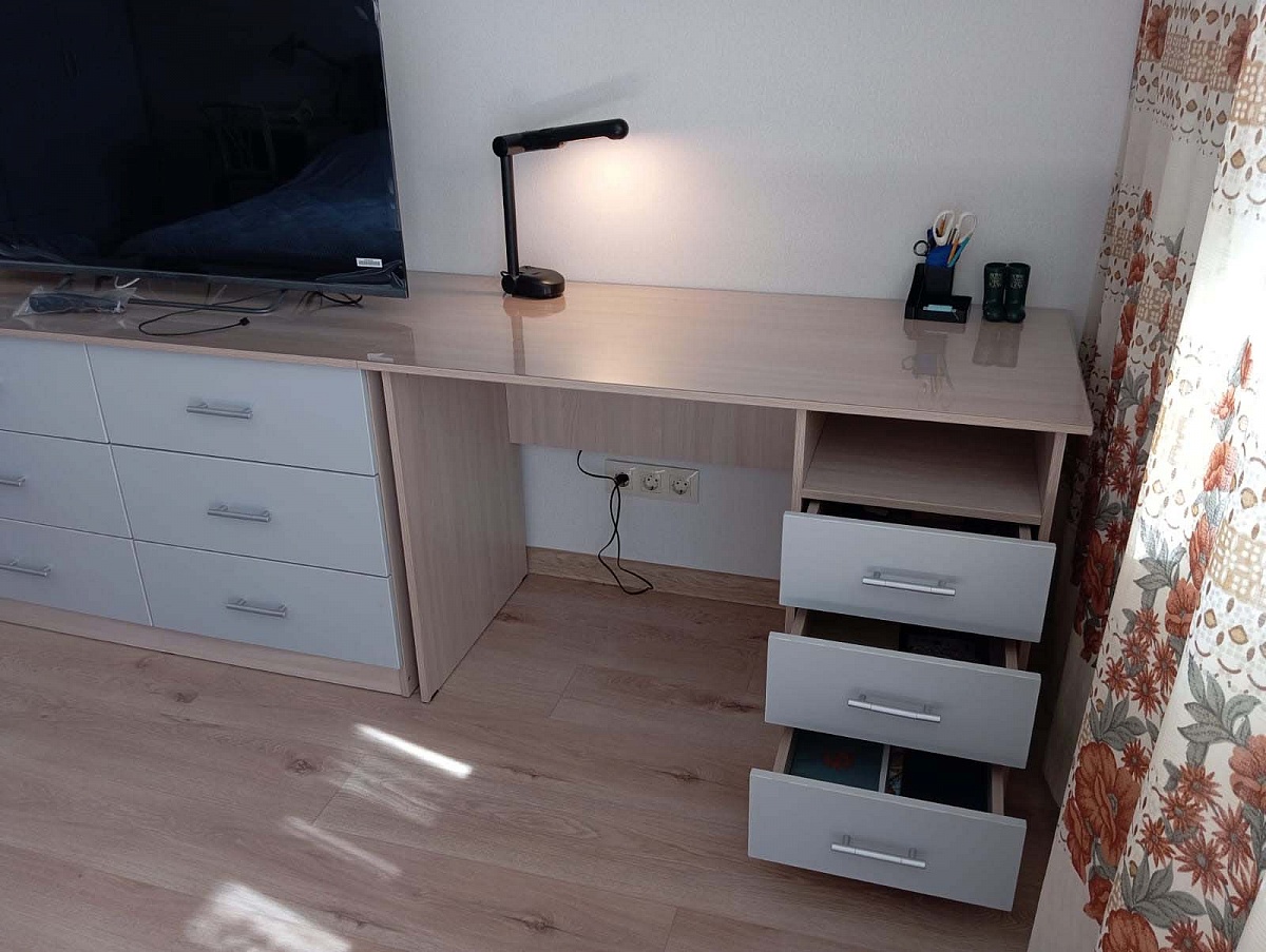 Заказ №891627 от 05.10.2023. Стол заказала немного длиннее стандарта. Удобный, крепкий, красивый, функциональный. Цвет Ясень Шимо Светлый / Серый в комплект с другой мебелью. Покупкой довольна, рекомендую. 00000522961   Письменный стол однотумбовый Vitamin BMS (1200х750х600)