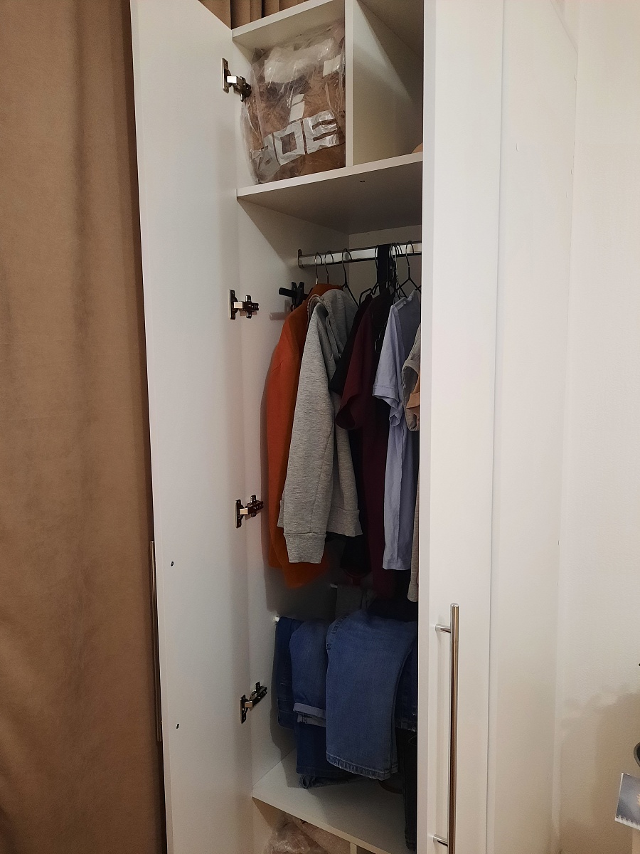 Отличный шкаф. Уже 3 в нашей квартире. Все четко по нашим замерам, компактный и вместительный, сборка несложная, фасады и фурнитура качественные. Спасибо за такую возможность-покупать мебель по индивидуальным размерам и незаоблачным ценам (Заказ 00000777740)