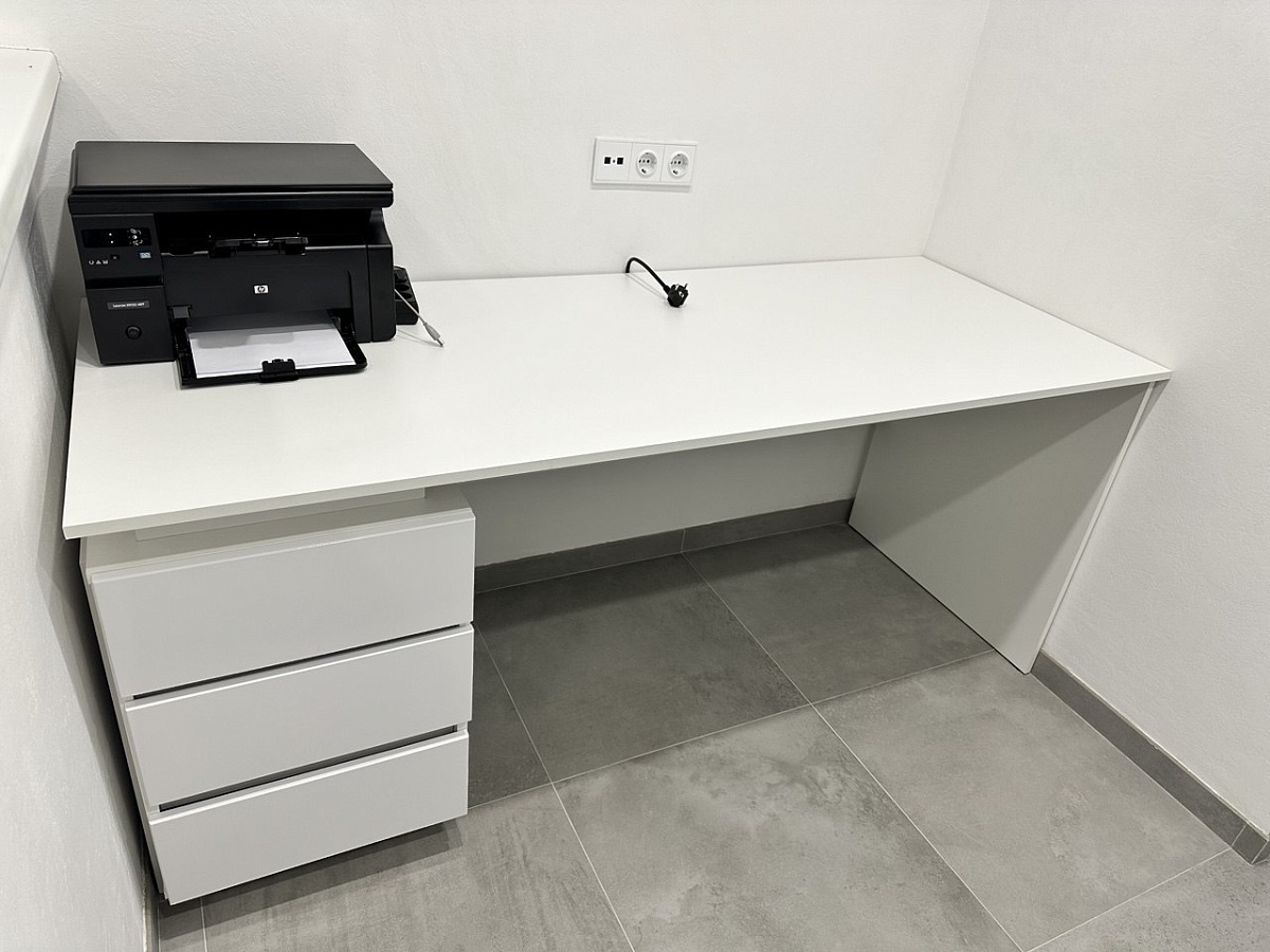 Стол получился функциональным, удобным, качественным. Делали по индивидуальным размерам, чтобы под ним мог проехать робот пылесос. Очень довольны. Спасибо!