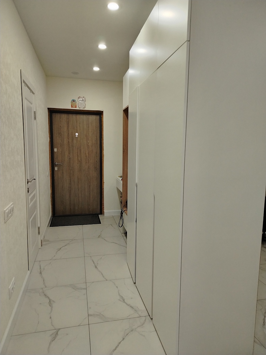 Комод очень понравился. Искали максимально длинный комод, во всю стену и чтобы подошел к интерьеру. Заменили одну полку в центральном отделении на три (добавили две дополнительные). Удобно, что у модели есть ножки и можно выбрать их высоту, чтобы прошел робот-пылесос. Сделан качественно, хорошие материалы, фрезировка фасадов выглядит отлично. Заказ 00000183333