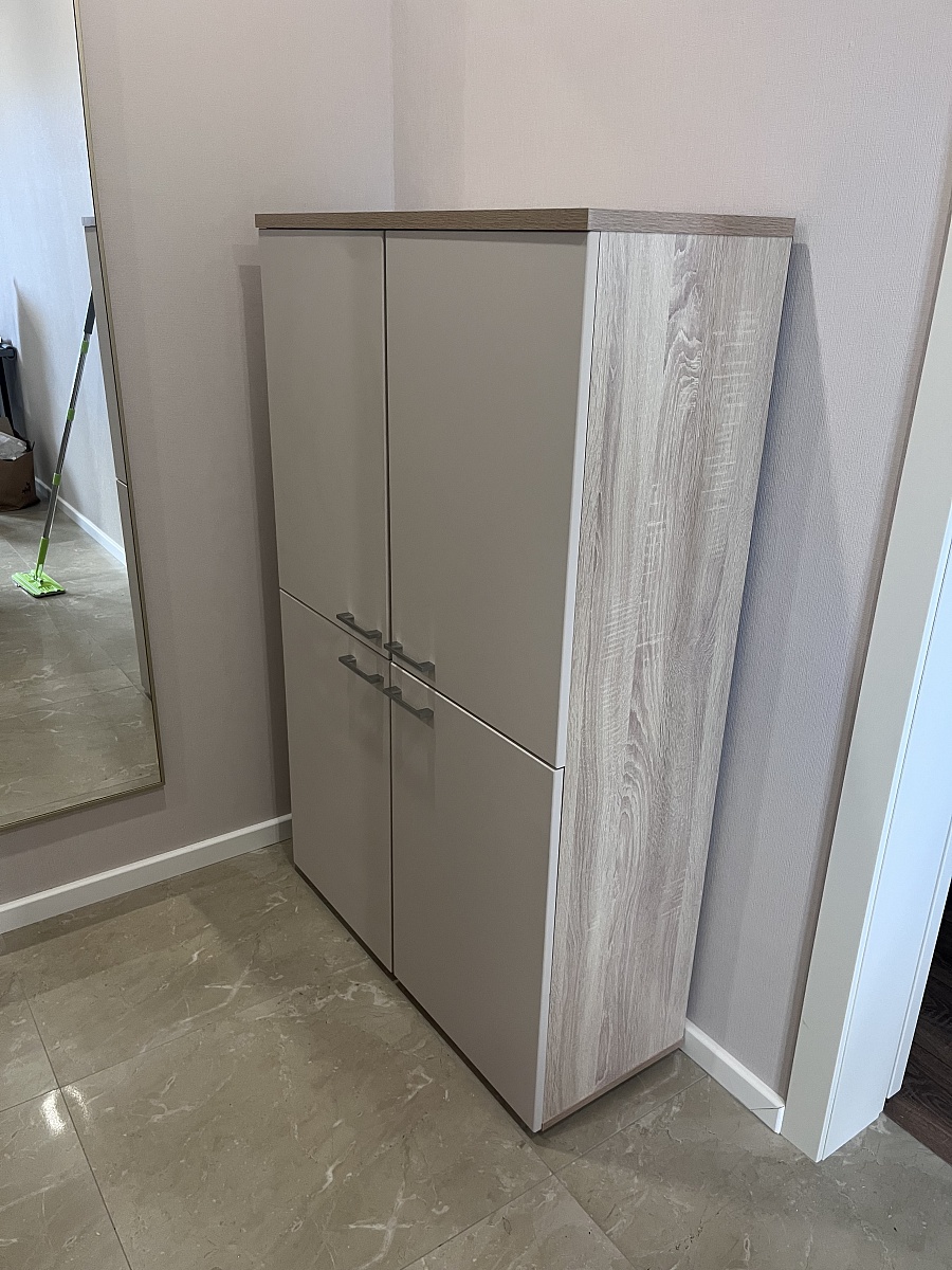 Отличная прихожая, дизайном довольна. Не очень хорошо задвигаются ящики, но сказали механизм разработается, надеюсь. И почему не предусмотрен крепеж к стене. Спасибо сборщику, придумал как ее зафиксировать.
