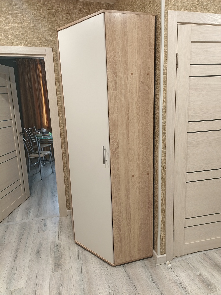 Шкаф распашной Остин Лайт 3 BMS (1400х2600х500). Прекрасный шкаф, хорошее качество исполнения. Прихожую обставила всю из Бестмебель (интересовал именно функционал: чтобы было куда сложить шапки, шарфы(ящики комода), повесить одежду (шкаф), бросить бумаги и сумочку по приходу (консоль)).Был брак на средней дверке на самом видном месте на уровне глаз, попросила заменить-заменили в кротчайшие сроки+доложили петли на две двери(12штук)- изначально их положить забыли, выяснилось в ппоцессе сборки только.Сама заменила штангу (в цвет, с покрытием), "родная" не нравилась-очень уж сильно об нее гремят вешалки.Заказом довольна, рекомендую👍. Огрехи есть, но если не на видном месте-закрываем глазки😉, цена устраивает.