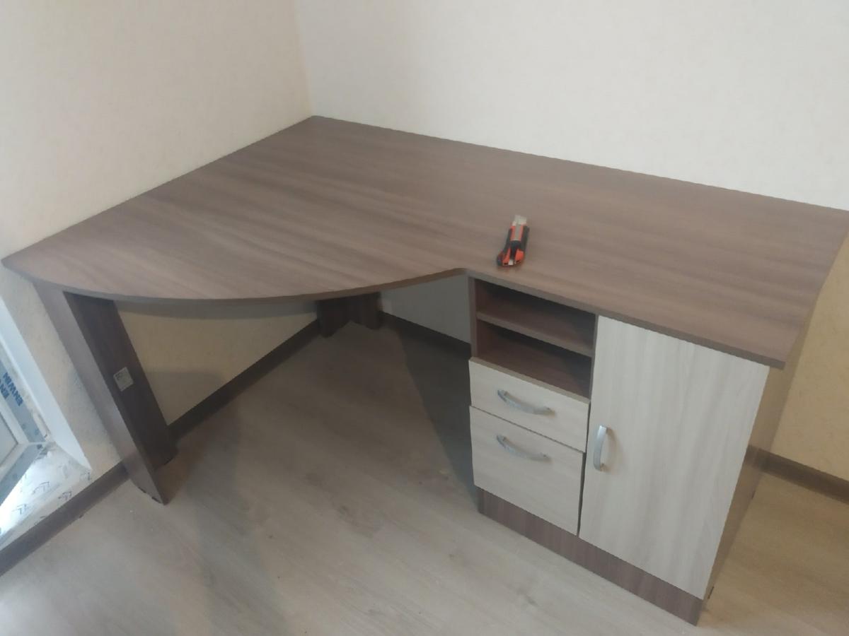Почему заказала стол здесь? Потому что есть возможность задать свои размеры,  выбрать необходимый, по стилю, цвет. Стол получился с хорошей, большой рабочей поверхностью. Но есть недостатки. Во-первых, дверные петли не очень хорошего качества. Во-вторых при распиле полотен, кое где есть сколы, которые не закрылись кромкой. В-третьих,  ящик сейф, вовсе не сейф, а просто лист двп вырезанный под размер ящика и вставляется сверху на вкрученные болтики. Я думала там будет спец.механизм, который позволит открывать потайное дно. Так что деньги на ветер.А в остальном стол отличный, крепкий, вместительный.  Взрослое компьютерное кресло заходит в проем между тумбой и блоком питания, это было для нас тоже важно.Из пожелания : доработайте, пожалуйста,  инструкцию по сборке. То что прислали, на инструкцию совсем не похоже. В остальном,  спасибо!