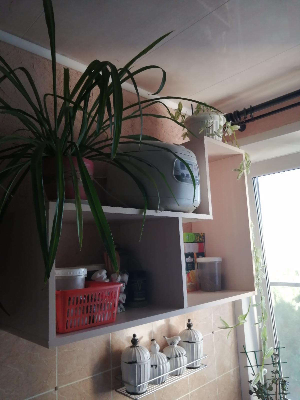Заказ#442496 Полка навесная досталась за 1 руб. Очень пригодилась на кухне, и цвет красивый, собирается легко.