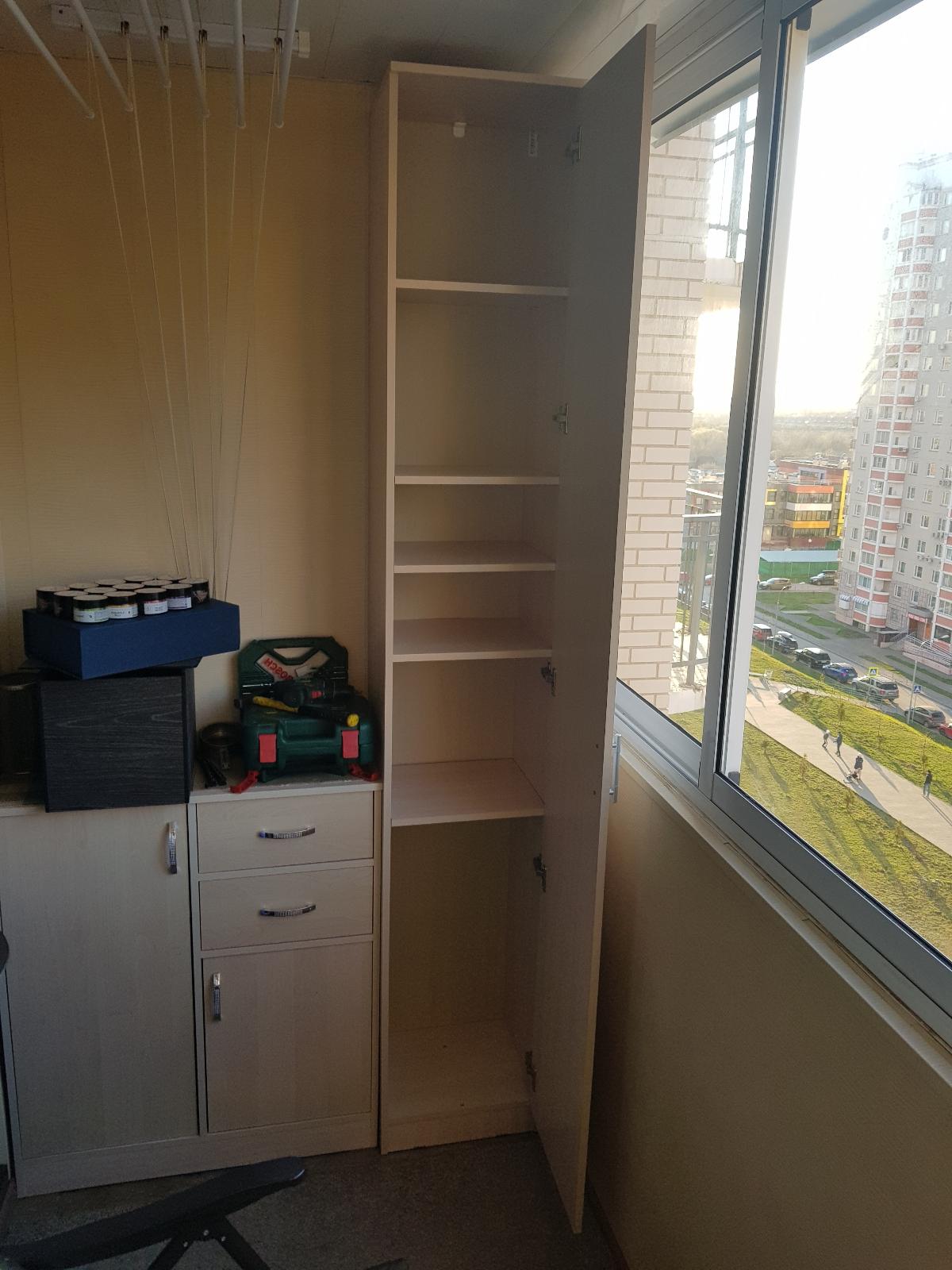Шкаф отличный! Легко собрать, все пазы подходят, фурнитура и крепежные элементы в полном комплекте. Стоит на неутепленном балконе и спокойно переносит все погодные невзгоды. Отличное решение для организации хранения!