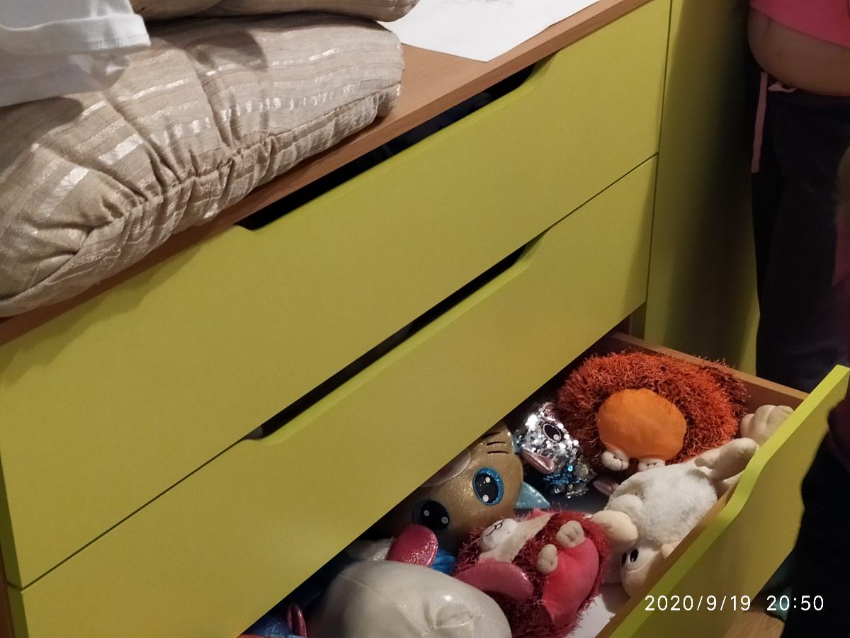 Заказала Комод К-4м BMS Ширина: 1400 Высота: 900 Глубина: 480 Цвет корпуса: Бук Бавария Цвет фасадов Зеленый Лайм,  нужен был к дополнению наших шкафов в детской, просто отличный комод на "5"! Сборка точно по инструкции, без заморочек.  Спасибо продавцу за возможность выбора своего размера и цвета. PS простите за беспорядок на фото))...дети..