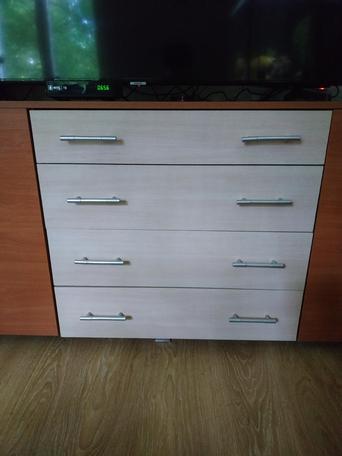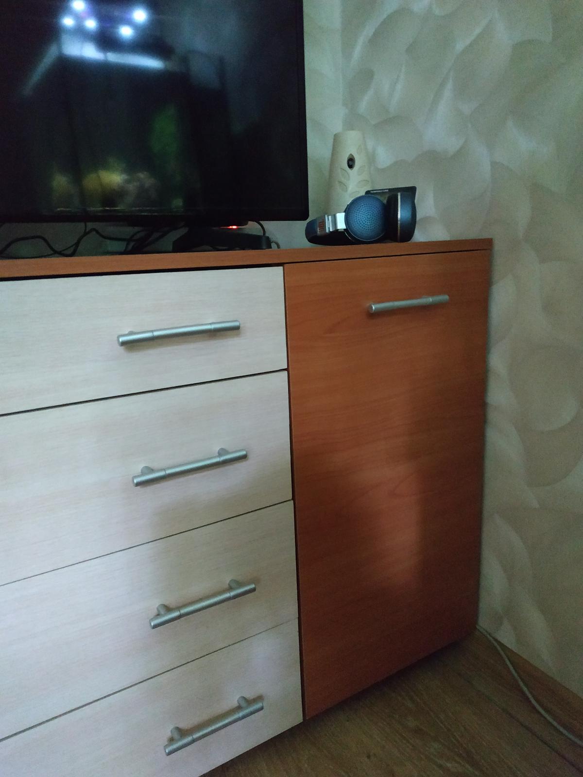 Выбирали комод под телевизор. Был нужен определенного размера, функциональный и подходящий по цвету. В этой модели устроило все. Четыре выдвижных ящика. По глубине подходят для папок формата А4. По бокам за дверками расположены полочки. Изменяла цвет, размер изделия. Доставка была точно в срок. Сборка не доставила хлопот. Комод отлично вписался в интерьер.